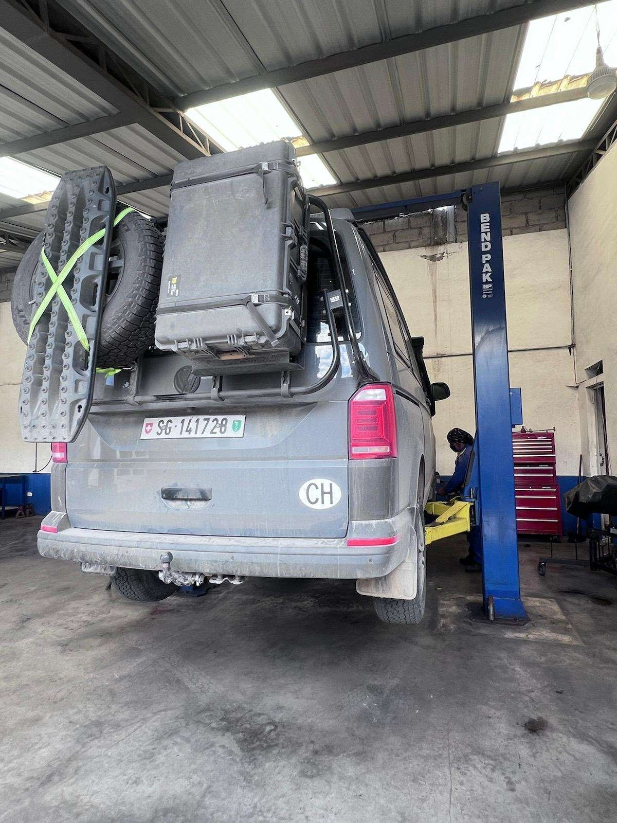 In den Bergen von Ecuador und den kommenden Ländern werden unsere Bremsen ziemlich gefordert. Deshalb werden diese sicherheitshalber geprüft und ja, sie müssen gewechselt werden. Einen Ölwechsel kriegt Ramón auch gleich. Einen kompletten Service machen wir in Quito. Da soll es eine gute VW Garage mit allen Ersatzteilen geben. Wir sind gespannt.