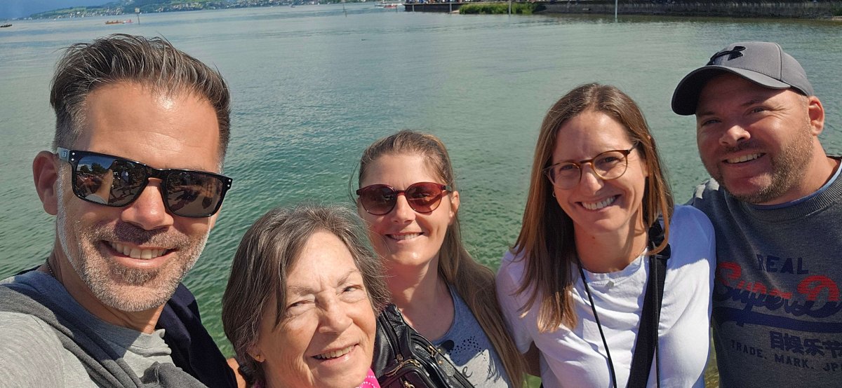 Dass wir in die Schweiz kommen, haben wir nur der Freundin unseres Neffen erzählt. Sie ist dafür verantwortlich, Joshua zu Simones Eltern zu locken. Das klappt auch super und die Überraschung ist bei den Eltern und Joshua gross.