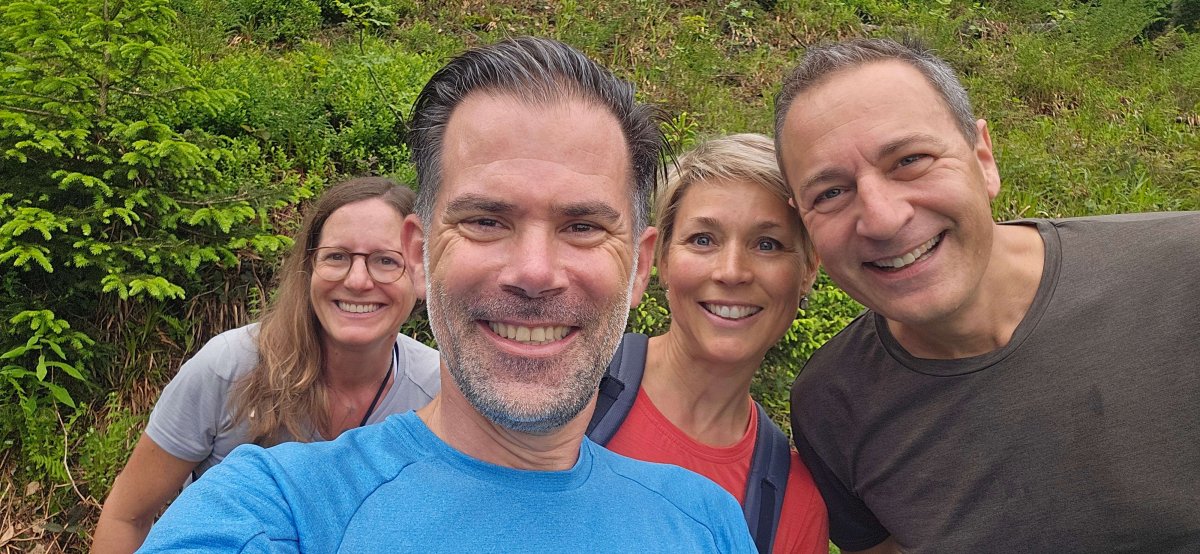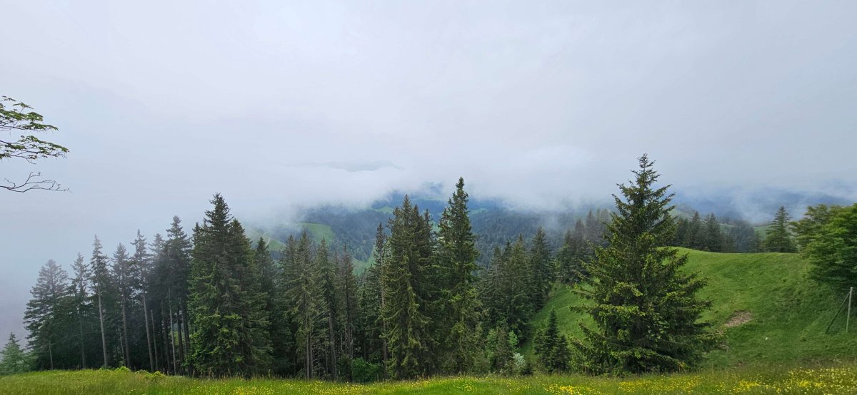 Neben dem vielen Essen und Trinken betätigen wir uns doch auch mal sportlich. Zusammen mit Isa und Infi laufen wir hoch auf den Napf. Aussicht können wir leider keine geniessen da das Wetter sehr verhangen ist. Es ist trotzdem super schön.