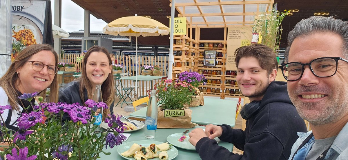 Da unsere Kids jetzt in Zürich leben, besuchen wir sie da selbstverständlich. Das Festival Foods kommt uns gerade recht. Beim Fooby Stand kann man seine eigenen Omeletten zubereiten die wir dann zusammen als Apéro verzehren.