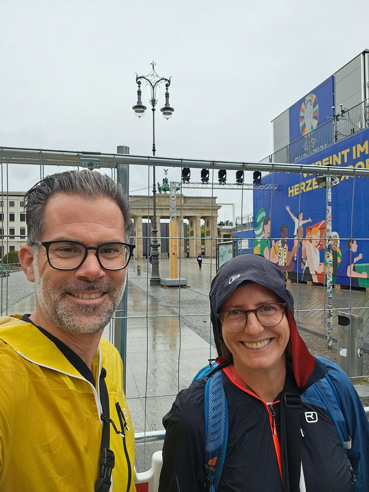 Da wir nur kurz Zeit haben, wollen wir ein typisches Touri Foto vor dem Brandenburger Tor machen. Aufgrund der Europameisterschaft kommen wir dem Tor aber nicht wirklich sehr nah, da alles rund um das Tor für das Public Viewing abgesperrt ist.