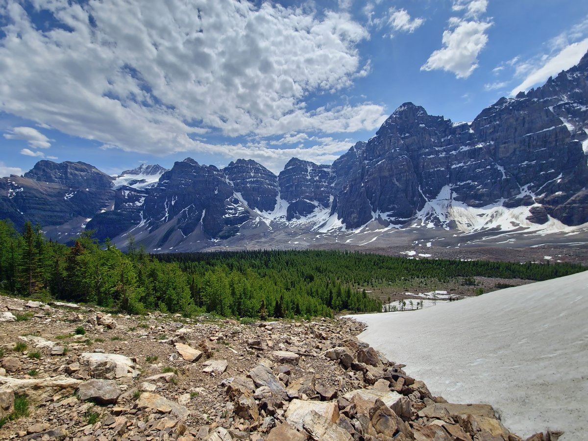 Da die Kanadier den Verkehr etwas reduzieren möchten kommt man an gewisse Orte nur mit dem Bus. Wir kaufen uns also je einen Super Pass mit dem wir von Banff zum Lake Louise und Lake Moraine fahren können. Der Lake Moraine ist insbesondere speziell wegen seiner Farbe. Aus diesem Grunde ist der See auch von Touristen überlaufen. Wir machen schnell die obligaten Fotos und beschliessen eine kleine Wanderung zum Eiffel Pass. Unsere Beine sind immer noch müde von der letzten Wanderung. Also schleppen wir uns mühselig den Berg hinauf. Mit der Aussicht werden wir glücklicherweise entschädigt. Auf dem Rückweg ruhen wir uns auf einer Bank aus. Dummerweise befindet sich die Bank an der Abzweigung zum Sentinelpass. Alle Wanderer schwärmen uns vor, wie schön dieser sein soll. Das können wir uns selbstverständlich nicht entgehen lassen. Also laufen wir auch noch zum Sentinelpass. Seht selbst ob es sich gelohnt hat.
