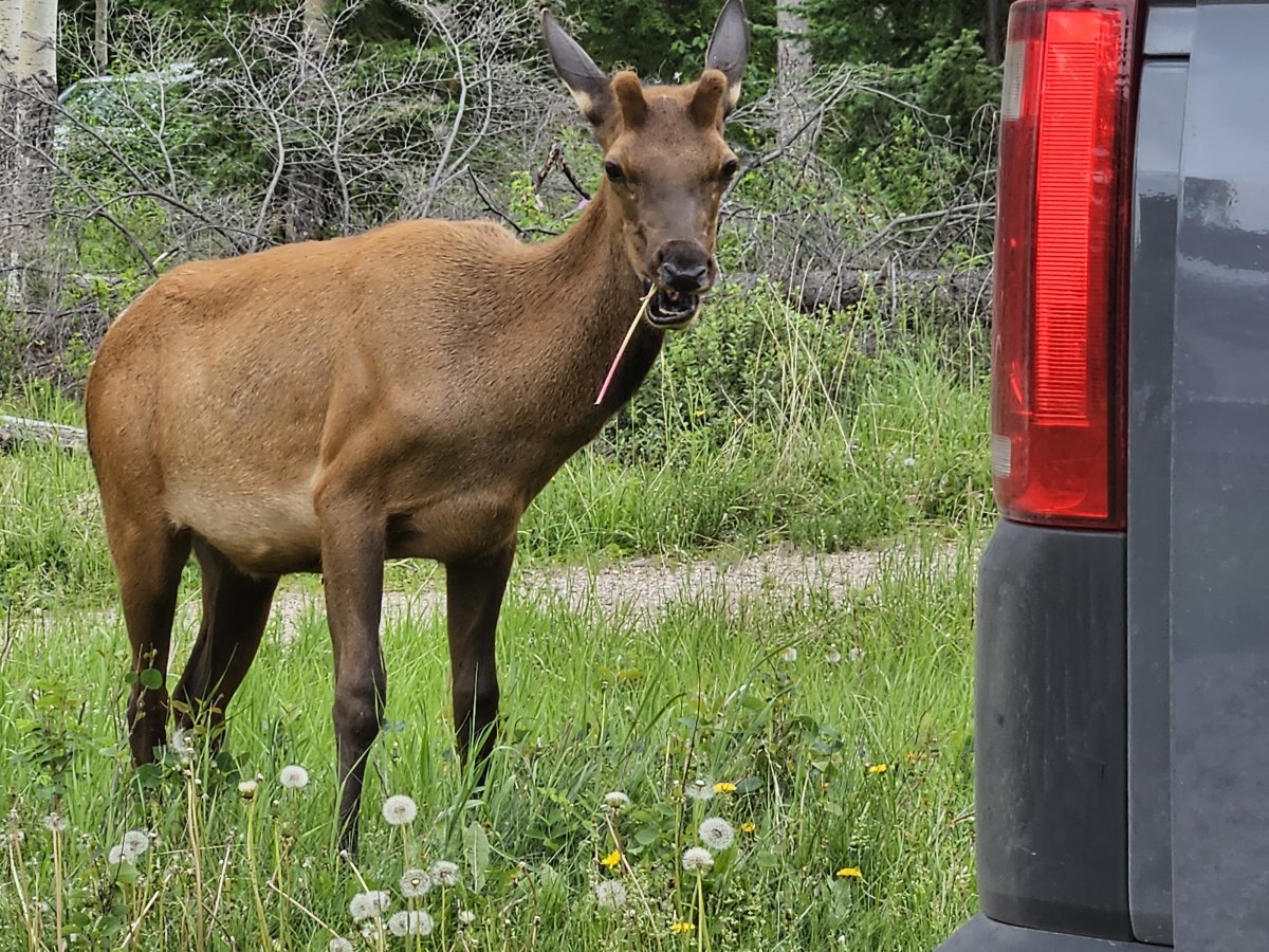 Auf dem Whistler Camping bei Jasper verbringen wir zwei Nächte. Wobei wir einen Tag einfach nur auf dem Camping chillen und nichts unternehmen. Ausser Wäschewaschen und Haareschneiden. Auch das ist ganz schön, denn wir werden von Elks besucht.