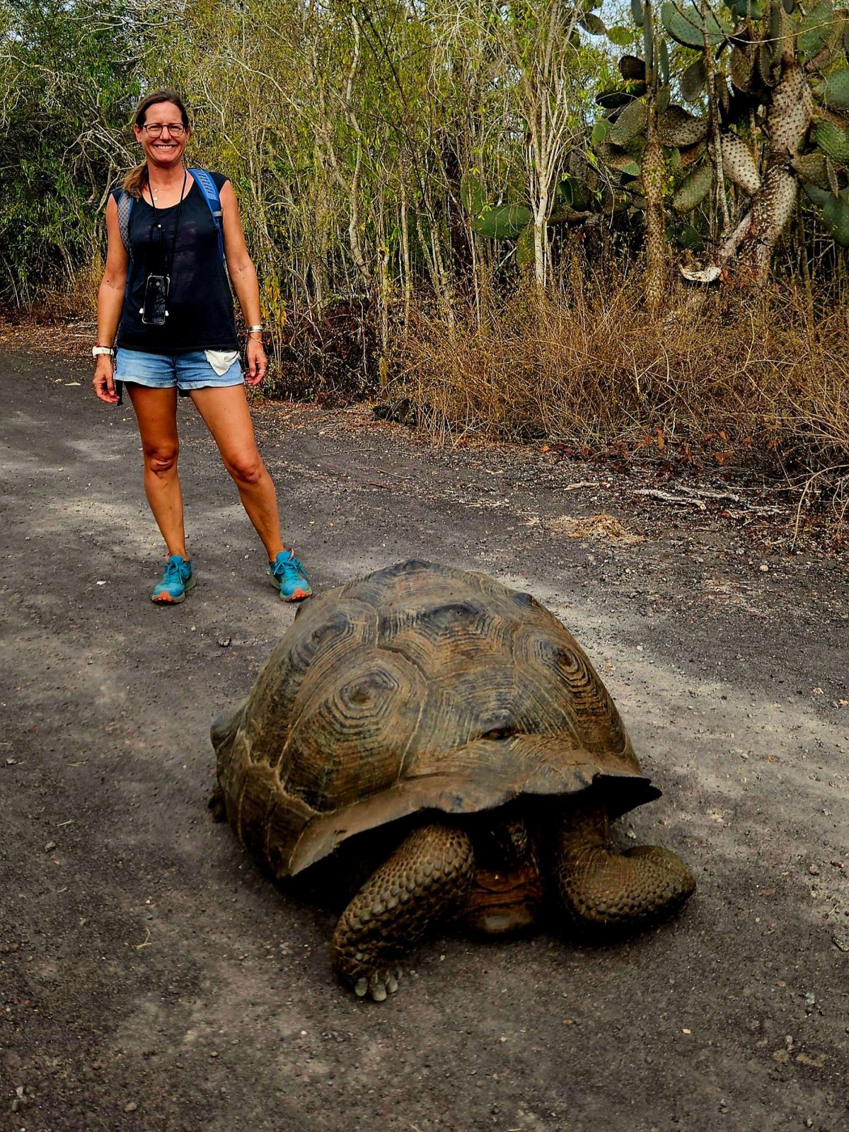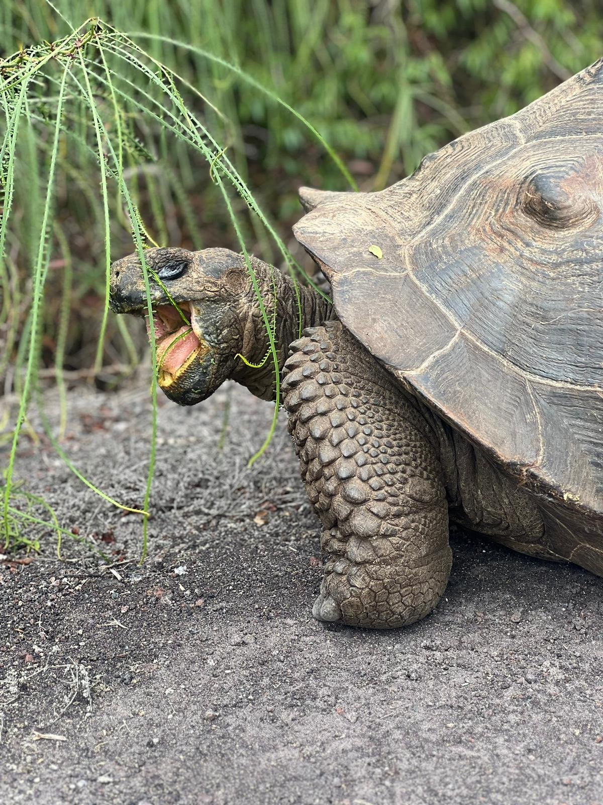 Die Schildkröten sind wirklich riesig und es ist etwas Anderes die Schildkröten in ihrer natürlichen Umgebung wie in einem Zoo zu beobachten. Das Leben einer Landschildkröte sieht aber sehr viel anstrengender aus wie das der Schildkröten im Meer. Sie können sich nur sehr langsam fortbewegen und der Panzer scheint bei jedem Stein oder Ast im Weg zu sein. Wenn sich die Schildkröten bedroht fühlen ziehen sie ihren Kopf unter ihren Panzer, dabei wird Luft herausgepresst was sich speziell, wie ein tiefer lauter Furz anhört. Joos lässt sich von den Landschildkröten nicht so begeistern. Gemäss seiner Meinung sieht man eine, kennt man alle. Die Wasserschildkröten gefallen ihm bei weitem besser.