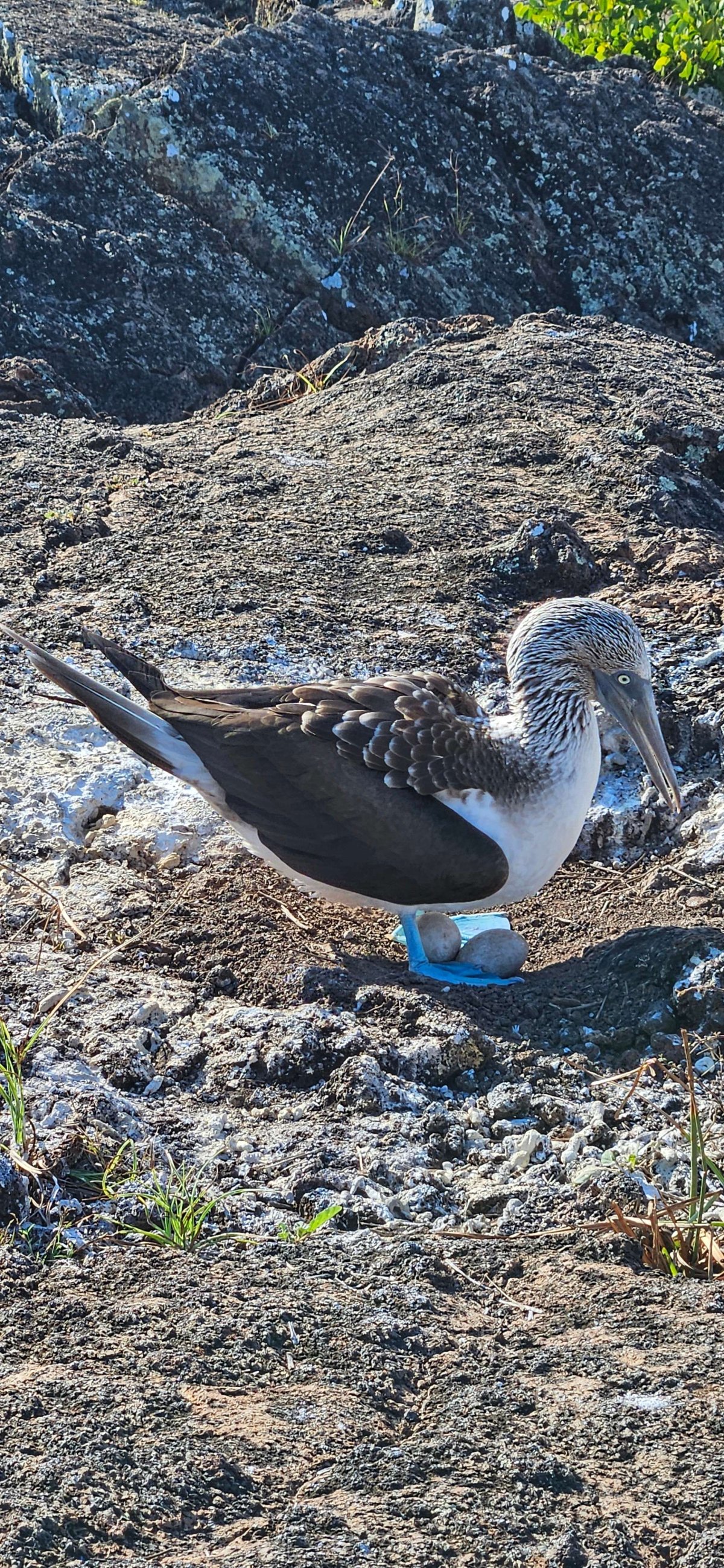 Das Highlight hier sind aber die Boobies (Blaufusstölpel) mit ihren blauen Füssen. Diese kommen um diese Jahreszeit zum brüten nach Los Tuneles. Ihre blauen Füsse sollen sie aufgrund der Sardinen haben die sie fressen. Es gibt nämlich noch solche mit roten Füssen. Diese sollen Tintenfische fressen und die Farbe von da haben. Das leuchtet uns zwar gar nicht ein, denn dann müssten diese ja schwarz sein. Aber den Touristen kann man ja alles verkaufen 😊.