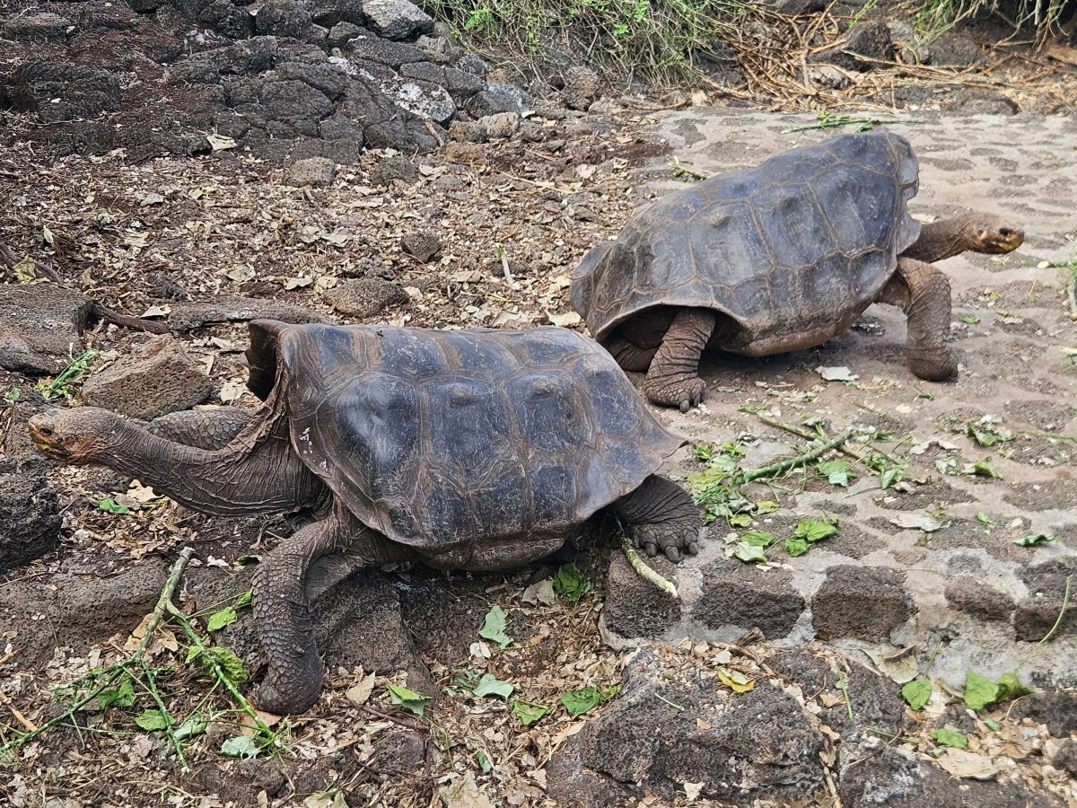 Da die Landschildkröten in der Zeit der Piraten fast ausgerottet wurden – sie haben sie zu Suppen und Lampenöl verarbeitet - gibt es auf den grössten drei Inseln je eine Schildkrötenaufzucht. Die Schildkröten werden da bis zu ihrem vierten Lebensjahr aufgezogen und danach wieder ausgewildert. Dies ist nötig da die Piraten auch viele Ratten mit auf die Insel gebracht haben die die Schildkröteneier und jungen Schildkröten fressen. Ratten sind also gar nicht gerne gesehen auf Galápagos. Jede Insel hat verschiedene Schildkröten Arten. Dies hat man aber bei Beginn der Aufzuchtprogramme nicht beachtet und somit war Lonesome George das einzige und letzte Reinrassige Schildkröten Männchen.