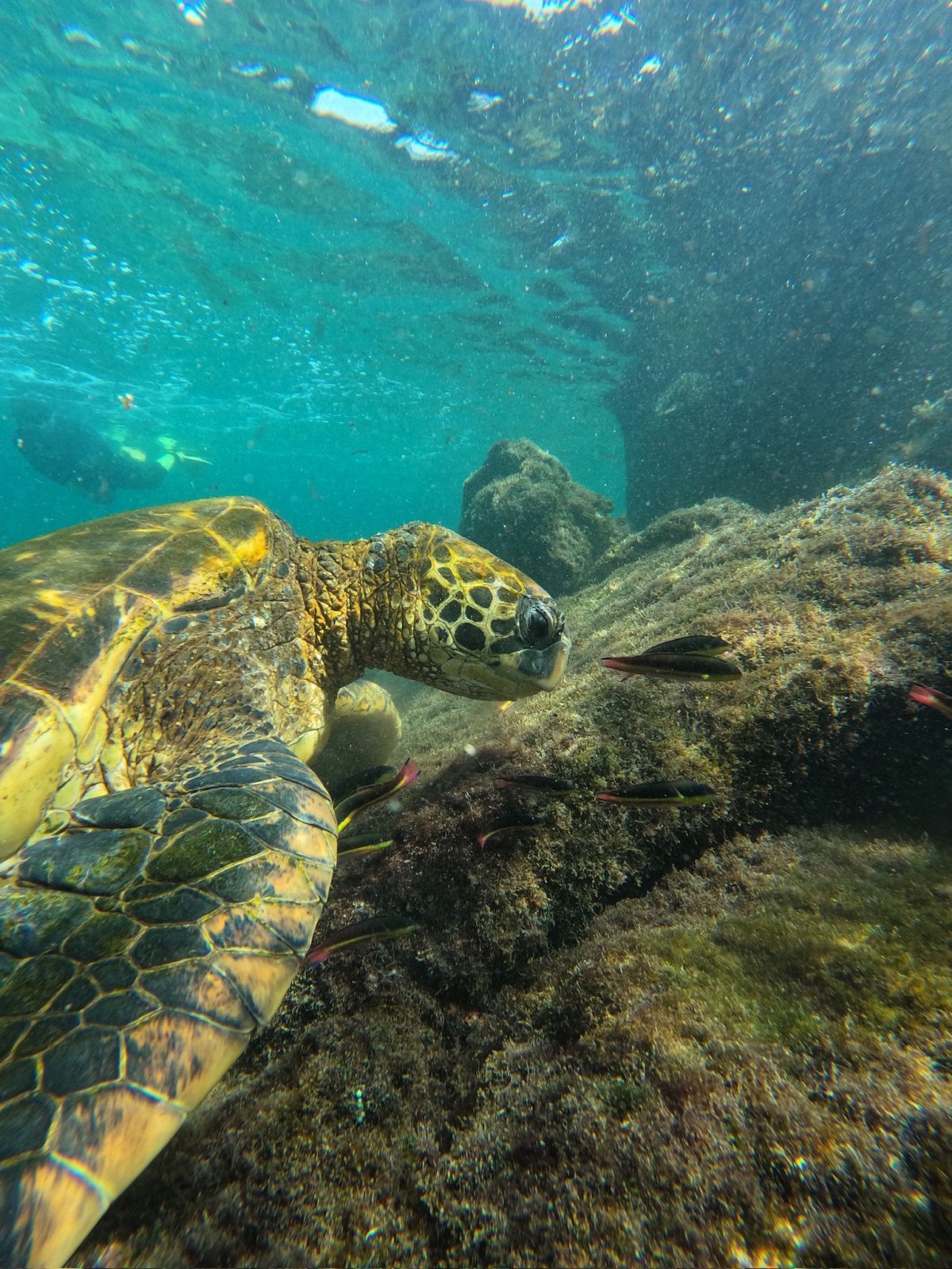 Galápagos ist ein Paradies für Tiere. Insbesondere Taucher und Schnorchler kommen hier auf ihre Kosten. Obwohl wir unseren Open Water abgeschlossen haben reicht unser Können beim Tauchen leider noch bei Weitem nicht für die Strömungen auf Galápagos aus. Da wo wir tauchen dürfen ist das Wasser nicht tief und man kann genauso gut auch schnorcheln.