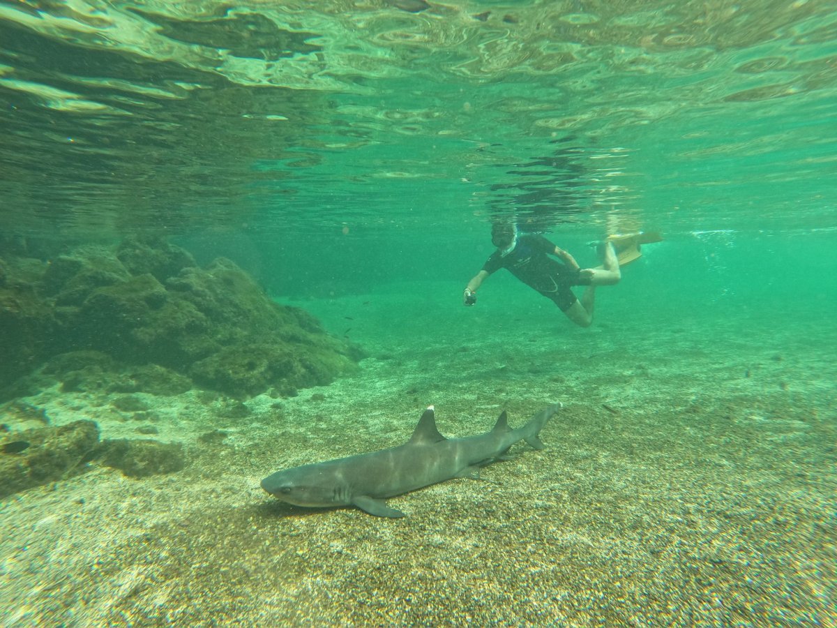 Da unser Guide uns versichert, dass die Riffhaie harmlos sind, werden auch wir etwas mutiger.
