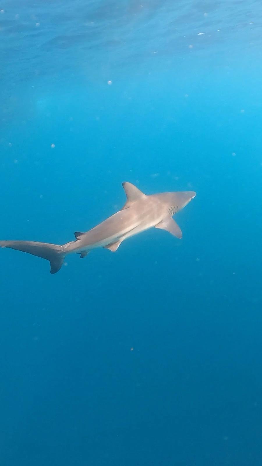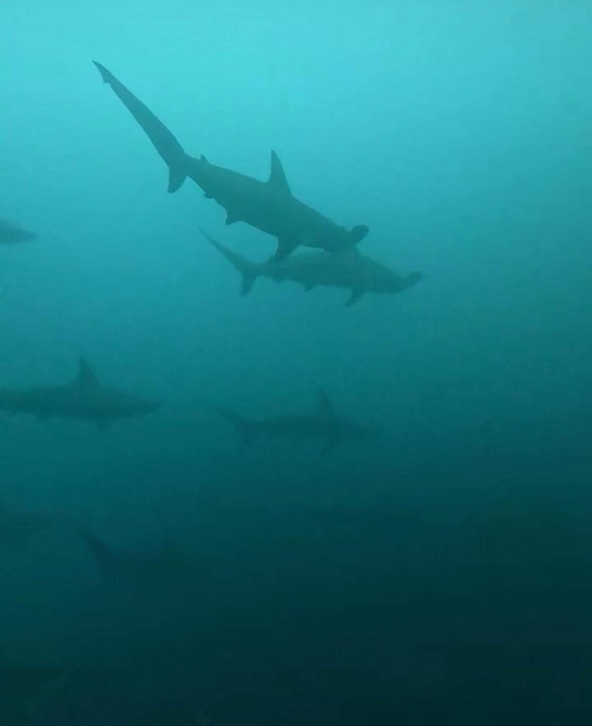 Dafür sehen wir einen Galápagos Hai der ganz nah an uns vorbei zieht. Dies sind auch ganz Majestätische Tiere – aber zu viele auf einem Haufen möchten wir glaube ich doch nicht sehen. Sie sind doch drei Meter lang und können uns easy zum Frühstück verspeisen.