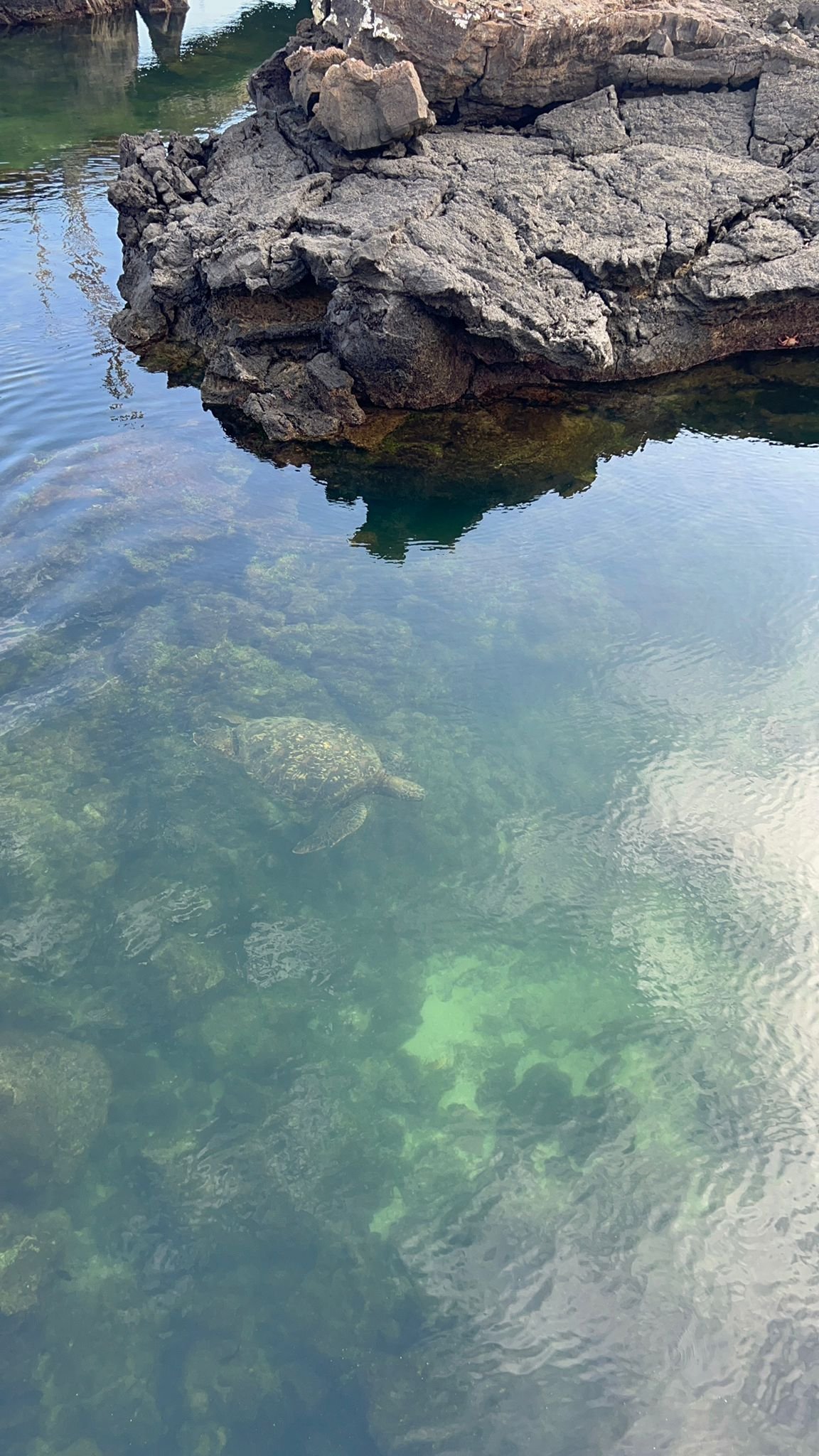 Ohne überhaupt ins Wasser zu gehen, sehen wir von oben viele Schildkröten und Haie.