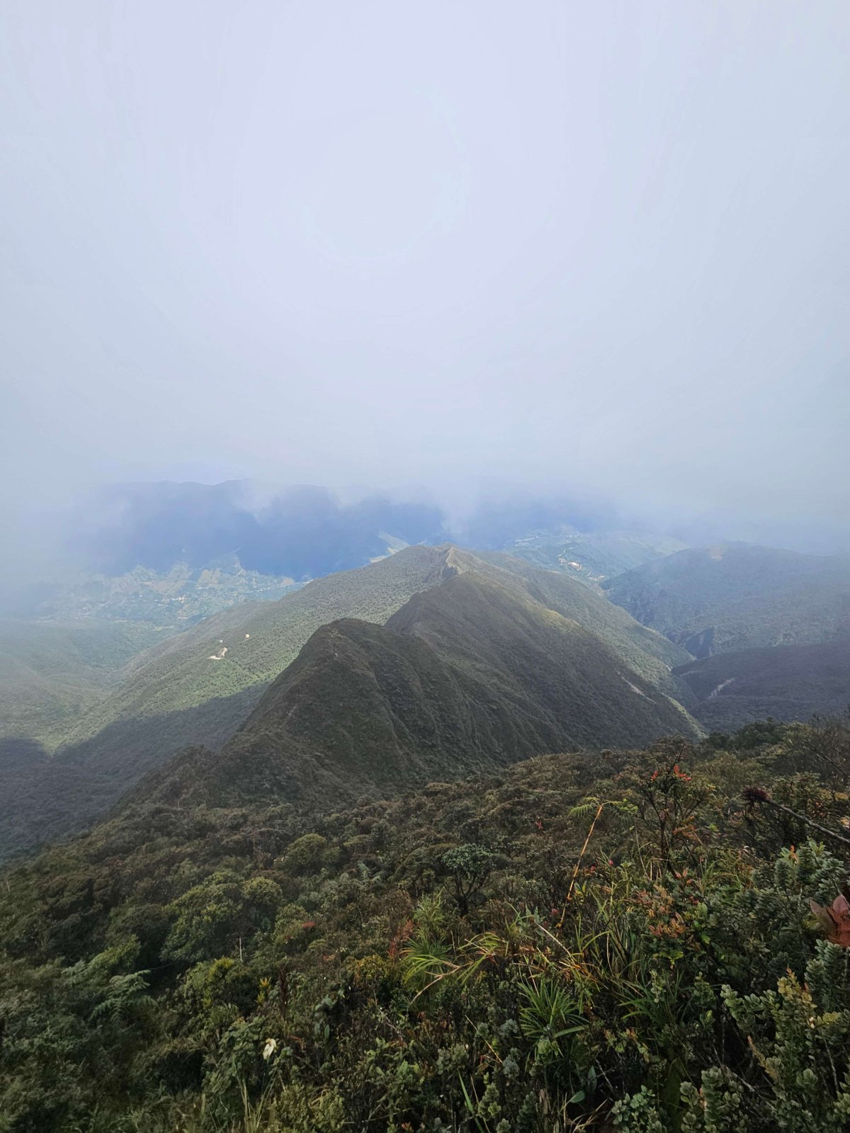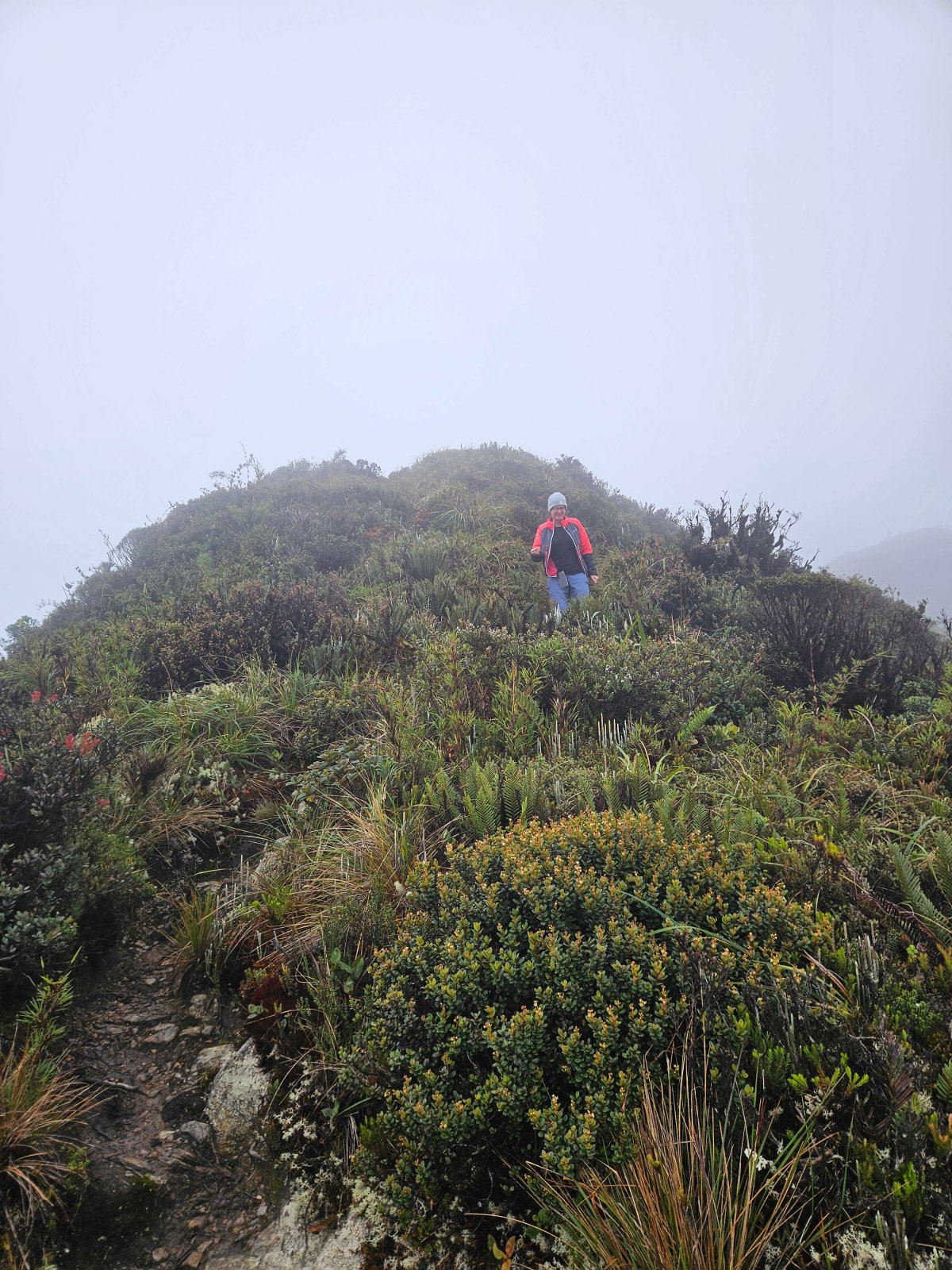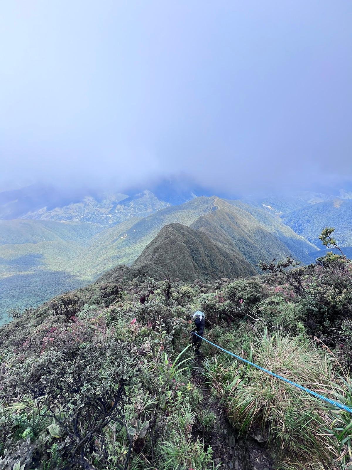 Für die Aussicht hat sich unseren Ausflug jetzt leider gar nicht gelohnt. Immerhin können wir sagen, wir haben uns bewegt. Ausserdem ist die Wanderung alles andere als langweilig. Zwischenzeitlich gibt es Passagen die sehr steil und nur mit Hilfe eines Seils passierbar sind.