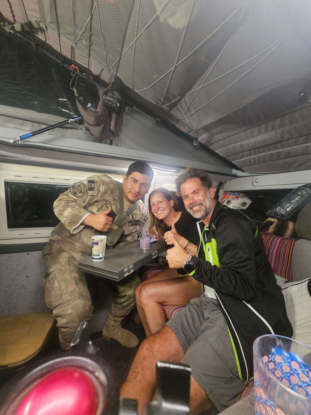 Auf 4'000m Höhe wird es nach Sonnenuntergang ziemlich frisch. Da wir mit Jeral Mitleid haben, laden wir ihn zum Z'Nacht bei uns ein. Es wird ganz ein gemütlicher Abend den wir sicher nie vergessen werden. So gut bewacht wurden wir während unserer ganzen Reise nie :-)