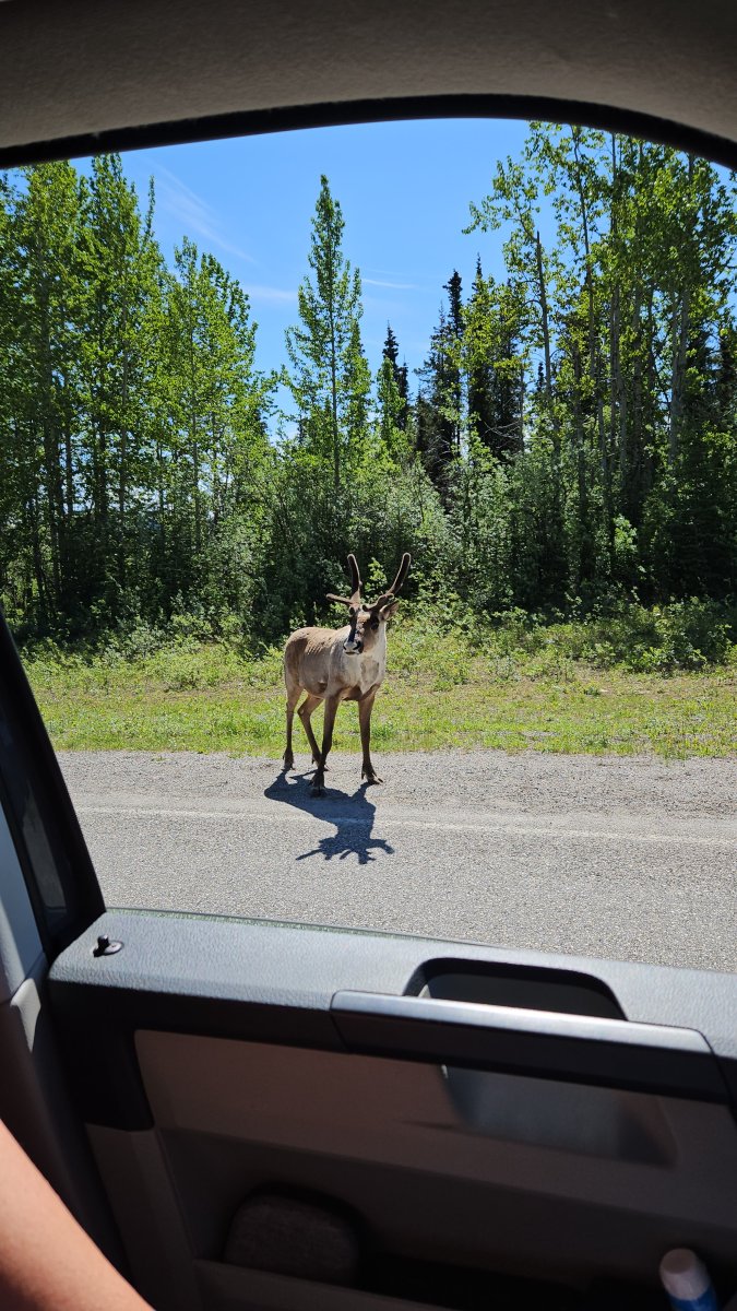 Der Alaska Highway ist eine spezielle Strasse. Man fährt stundenlang durch die Natur. Mehrheitlich durch Wälder und an vielen Seen vorbei. Städte, Dörfer oder auch nur Häuser gibt es praktisch keine. Internet schon gar nicht – Radio leider auch nicht. Das Gute daran? Man braucht weder eine Karte noch Google Maps, denn verfahren kann sich nicht einmal Simone. Die einzige Strasse führt entweder in den Süden oder nach Norden Richtung Alaska. Wir wissen, dass Canada gross ist. Uns war aber nicht bewusst, dass Canada sooo gross ist. Die Schweiz ist dagegen ein kleiner Mückenschiss. Aber ein ganz schöner und abwechslungsreicher Mückenschiss. Unsere Playlists werden schnell langweilig. Dafür sehen wir eine Menge Tiere. Schwarzbären, Bisons, Bieber, Sheeps mountains , Caribous, Moose……