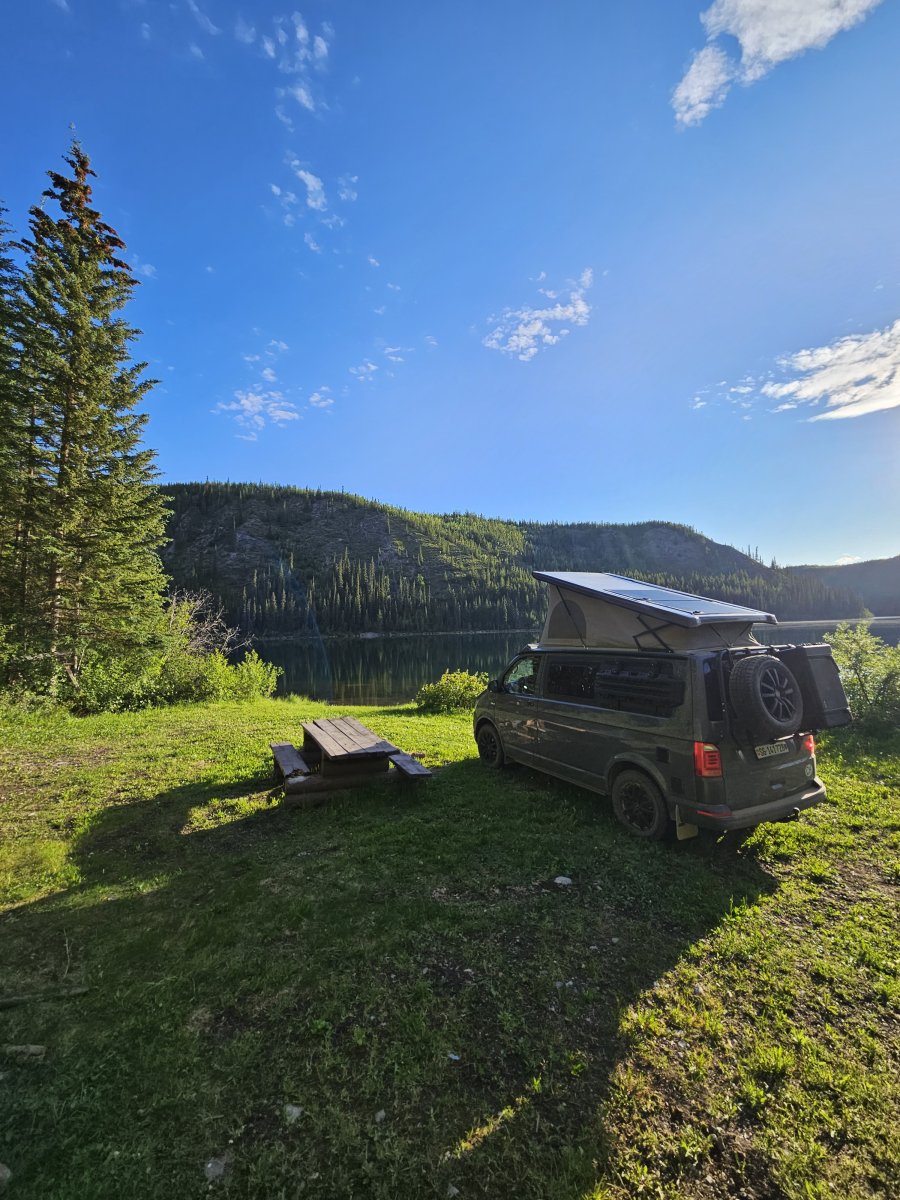 Nach unserem Erlebnis mit dem Parkranger in Alberta haben wir schnell gegoogelt wie die Regeln bezüglich Wild Campen in British Columbia aussehen. Campen ist auf speziellen Recreation Sites möglich. Oftmals kann man da ganz gratis campen. Manchmal bezahlt man eine kleine Gebühr. Die schönsten Gratis-Plätze sind jedoch nur mit 4x4 erreichbar. Wir sind begeistert.
