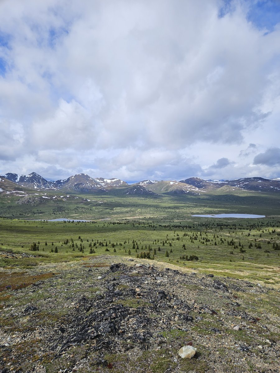 In Whitehorse legen wir einen Waschtag ein und füllen unsere Vorräte auf. Auf dem Weg zu unserem Übernachtungsplatz sehen wir eine Elchin und mehrere Porcupines. Das sind ganz spezielle Tiere die aussehen als könnten sie nicht richtig laufen. Wenn es ihnen aber ungemütlich wird sind sie doch ganz schnell. Da wir die letzten Tage viel gefahren sind, möchten wir unbedingt wieder eine Wanderung machen. Vom Übernachtungsplatz wandern wir vom Fish lake etwas in die Höhe. Oben ist es eher kalt rund windig. Dafür geniessen wir eine wunderbare Aussicht.