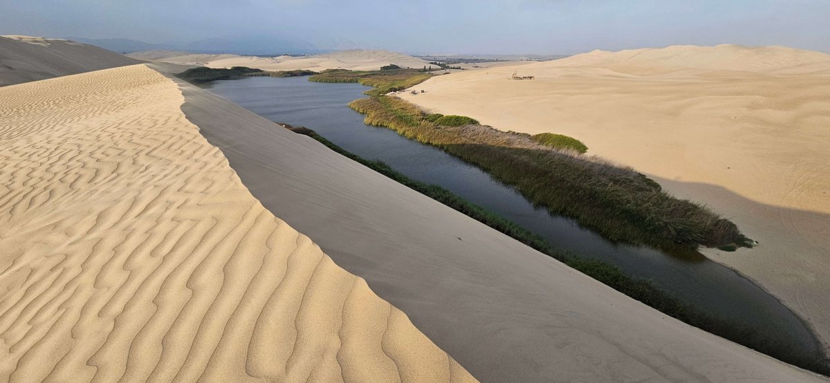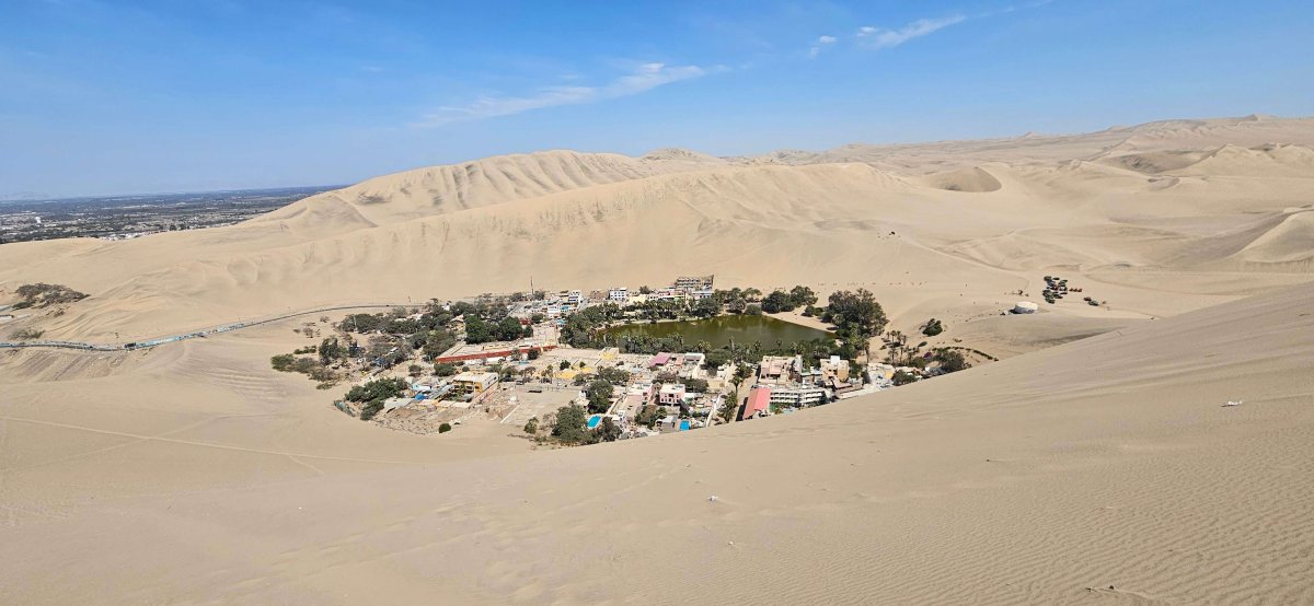 Die berühmte Oase Huacachina können wir selbstverständlich nicht auslassen. Der Camping auf dem wir übernachten, befindet sich direkt an der Oase und ist ganz gemütlich. Es gibt sogar einen Pool mit Poolbar. Die Wüste rund um die Oase ist noch etwas beindruckender als die der anderen Oase. Allerdings ist es hier sehr touristisch und die Oase weit weniger schön. Wir geniessen es trotzdem. Vor allem die Zeit an der Poolbar. Es gibt schlimmere Orte um den 26. Hochzeitstag zu feiern.