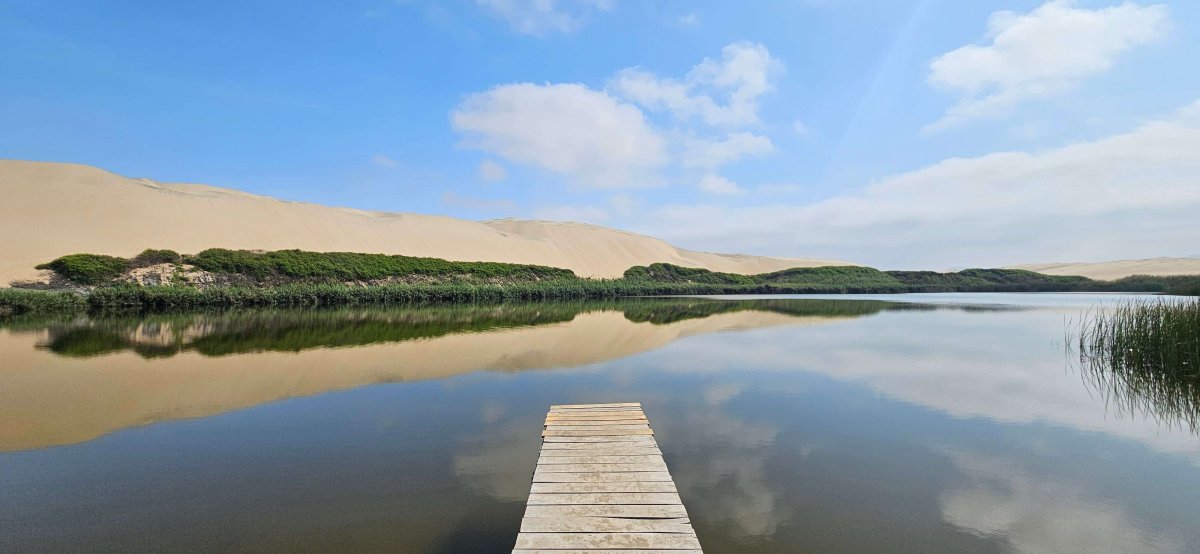 Die Oaisis de Moroni ist bei den Touristen noch nicht bekannt. Zum Glück nicht. Die Oase versteckt sich inmitten der schönen Sanddünen. Ausser einem Bootssteg, einer kleinen herzigen Bar mit Sonnenschirmen und Liegestühlen, gibt es bei dieser Oase aktuell noch gar nichts. Wir gönnen uns ein kühles Bier und geniessen die Liegestühle.