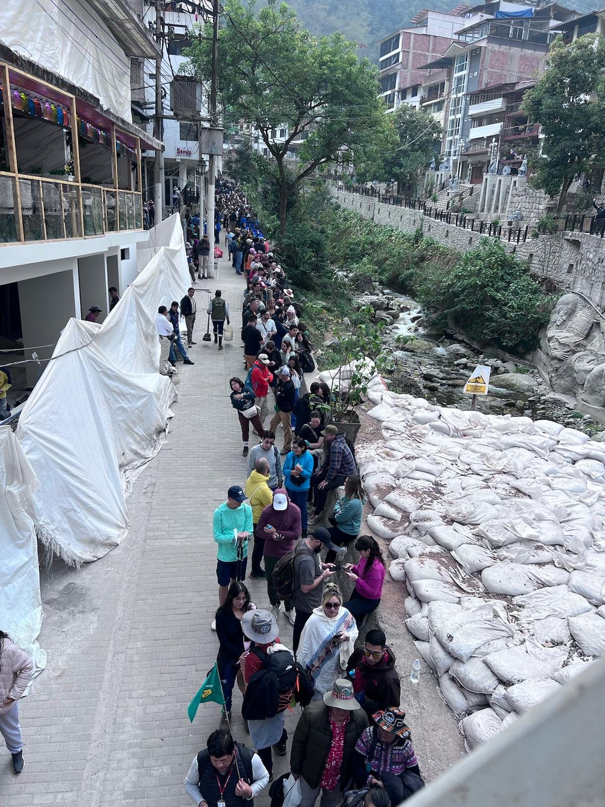 Für den Machu Picchu sind die Tickets im Vorverkauf bereits bis November vergriffen. Täglich werden bei der Gemeinde Aguas Calientes 1000 Tickets verkauft. Damit man eines dieser Tickets ergattern kann, muss man früh Morgens eine Nummer ziehen. Ab Nachmittags um 15:00 Uhr werden dann die Tickets den Nummern nach verkauft. Je kleiner die Nummer, je grösser die Chance, dass man zur gewünschten Tageszeit die gewünschte Tour erhält. Um möglichst eine tiefe Nummer zu erhalten laufen wir um vier Uhr Morgens im Dunkeln los. Der Weg führt der Bahnlinie entlang, verlaufen kann man sich also kaum. Allzu gemütlich ist es aber nicht auf dem Schotter zu laufen. Um 6.30 Uhr erreichen wir endlich die Gemeinde und ergattern die Nummern 39 und 40. Mit diesen Nummern steht uns die gesamte Auswahl der Tickets offen. Am Nachmittag werden die ersten Hundert Personen aufgerufen und nach 20 Minuten haben wir unsere Tickets. Es ist wirklich super gut organisiert. Uff, die erste Hürde für den Machu Picchu haben wir geschafft.