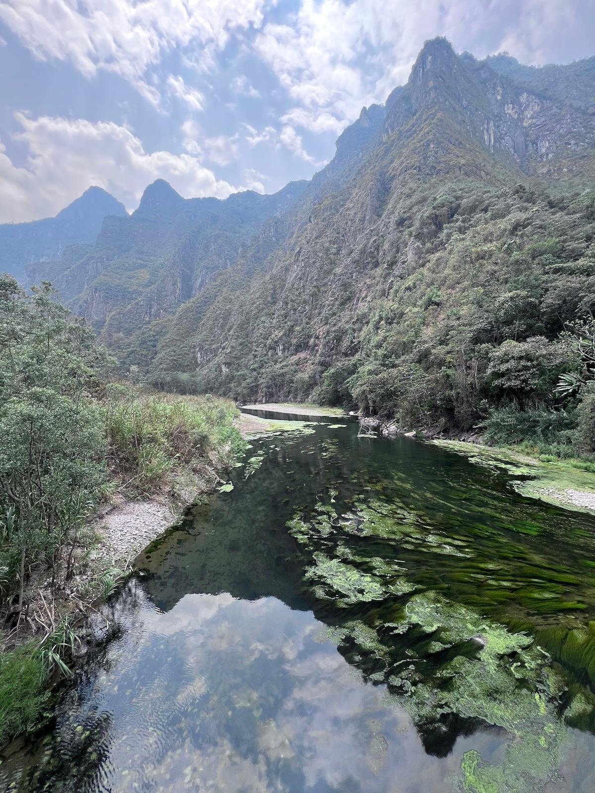 Kurz bevor wir den Ausgang erreichen, zieht der Nebel doch noch etwas weg und wir sehen den Berg Wayanu doch noch. Ohne Nebel wirkt das Dorf gleich anders. Es liegt in wunderschöner Natur mitten in den schönen Bergen. Wir haben innerlich den Machu Picchu schon verflucht und jetzt doch noch Frieden geschlossen.