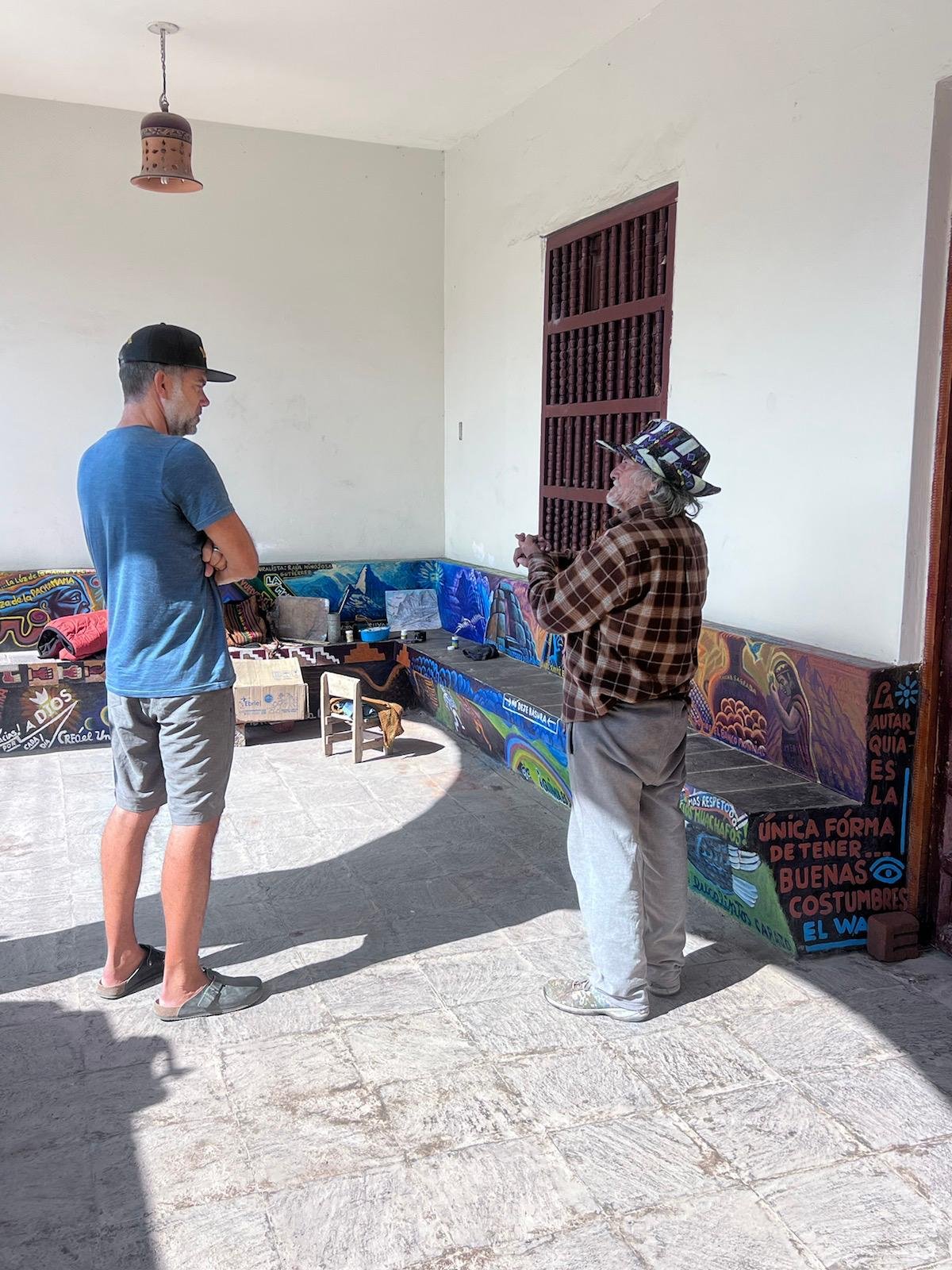 Am nächsten Morgen wird es ziemlich früh schon wieder sehr laut. Ein Künstler bemalt bei ultra lauter Musik die Bank genau neben unserem Auto. Er erzählt uns ziemlich lange was ihn inspiriert und was seine Zeichnungen bedeuten. Ein wirklich interessanter Mann 😊