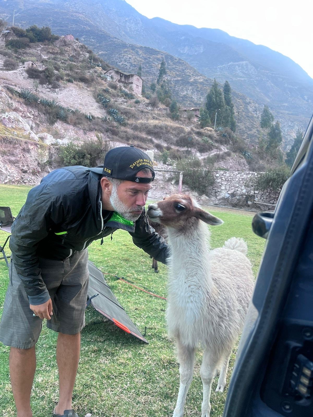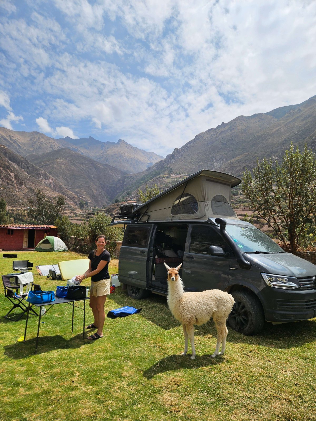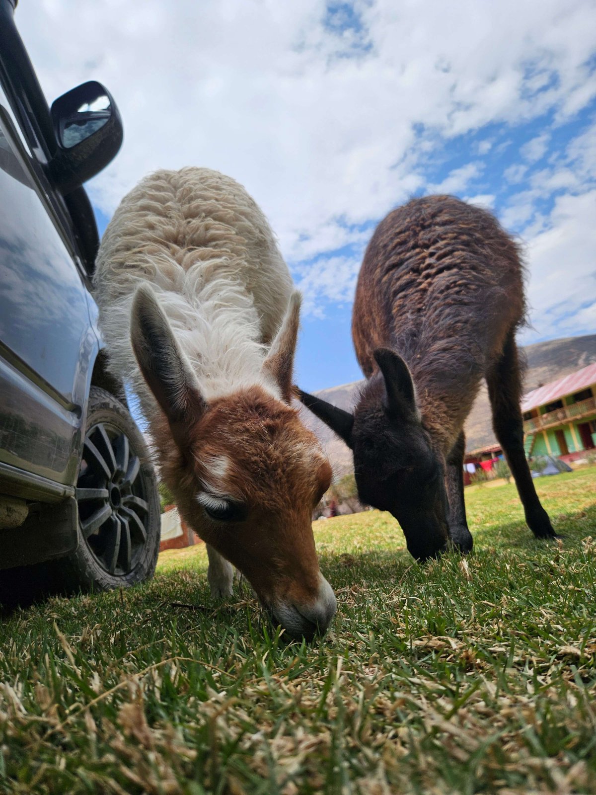 Neben der Wiese gibt es ein Gemüsegarten bei dem wir uns bedienen können. Damit die Wiese schön kurz bleibt, haben sie zwei Lamas. Eines davon heisst Inti (Sonne) und ist erst 6 Monate alt und total verschmust.