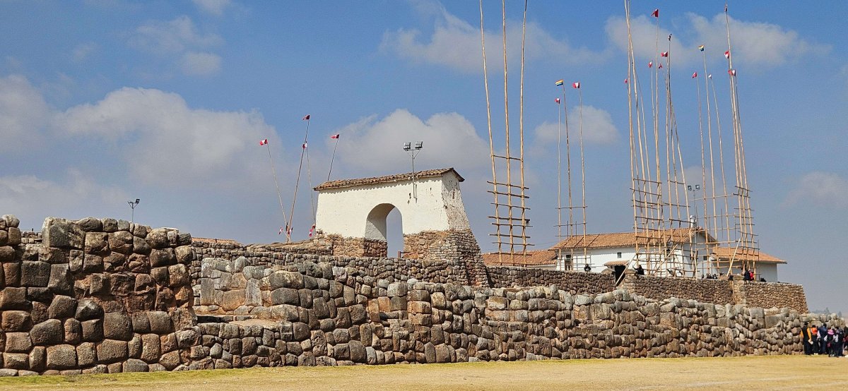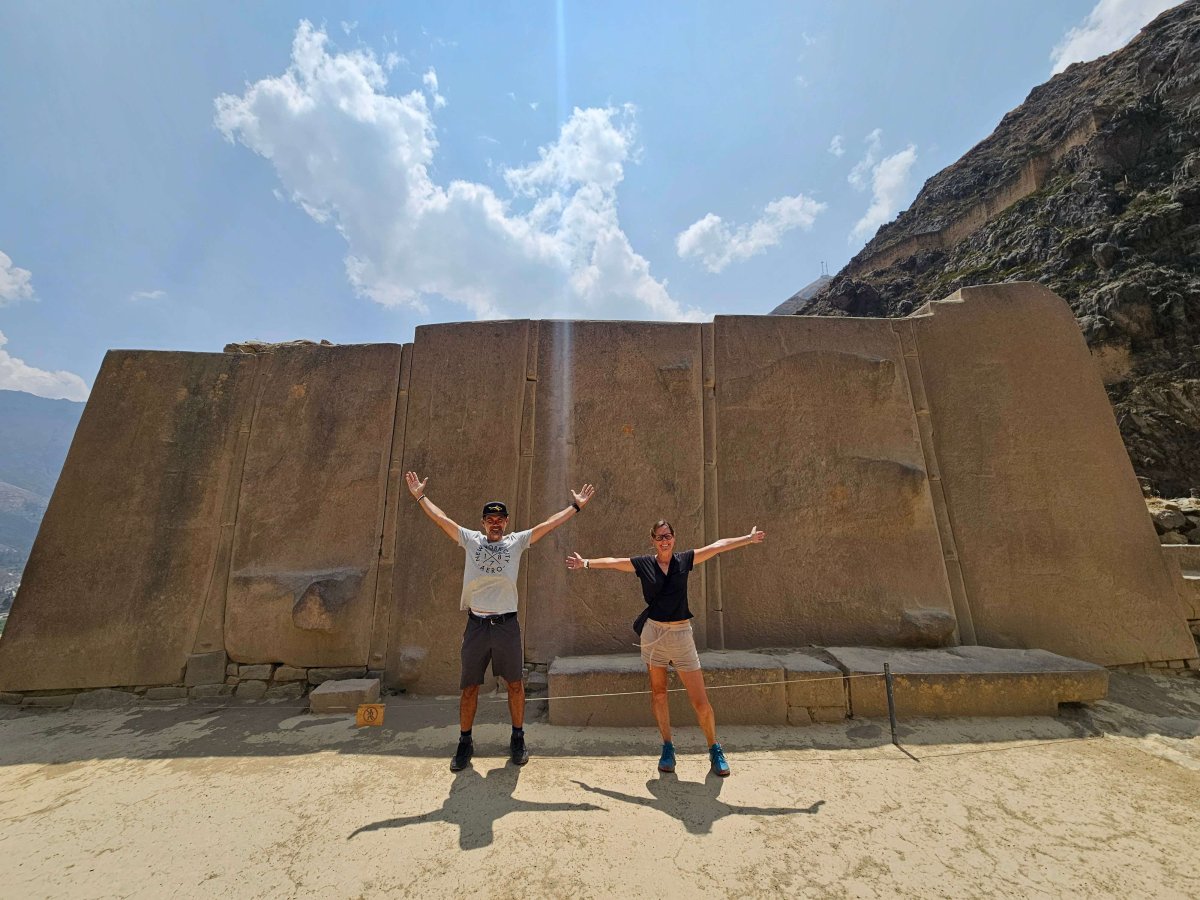 Die Mauern kommen ganz ohne Mörtel aus und fallen auch bei Erdbeben nicht zusammen. Die Millimeter kleinen Ritzen werden mit Alpaca Fett verschlossen. Jeder Tempel ist zur Sonne ausgerichtet. Damit die Sonne bei Sonnenaufgang am 21. Juni direkt zur Tür des Tempels hereinscheint wurde ein Stück des gegenüberliegenden Berges abgetragen. Beim genaueren hinschauen sieht man, dass der Berg präpariert wurde. So ist beispielsweise genau gegenüber des Tempels ein Inka Kopf im Berg zu sehen.