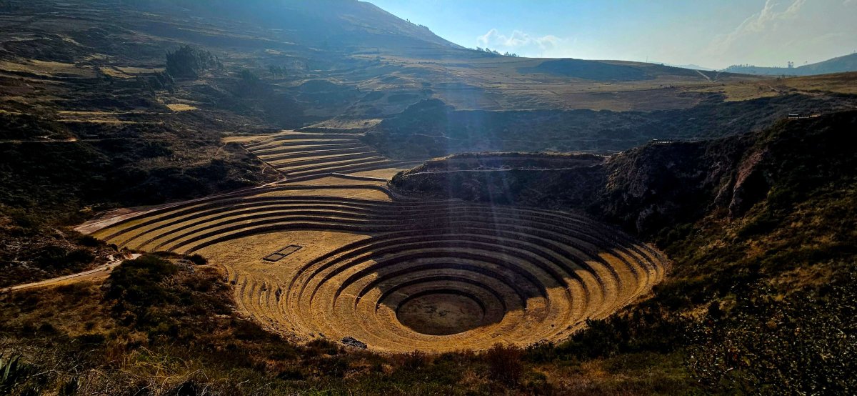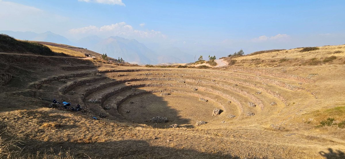 Die runden Terrassen von Moray wurden zu Laborzwecken verwendet. So wurde auf diesen Terrassen die verschiedenen Maisarten geniessbar gezüchtet. In Südamerika sieht der Mais übrigens ganz anders aus als unserer. Die Körner sind etwas doppelt so gross und schmecken auch ganz anders. Ausserdem gibt es hier zirka 600 Maisarten. Bei den Kartoffeln ist es etwa dasselbe. Nur sind es hier über 3’000 verschiedene Arten die man hier noch kennt.
