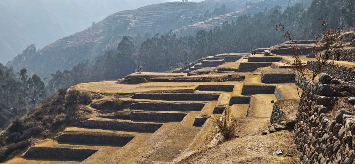 Bei Písac treffen wir auf ganz viele Terrassen. Da wir uns zu wenig informiert haben, laufen wir ganz unvorbereitet in den Park hinein. Ein Rundgang soll mindestens drei Stunden dauern und der Aufstieg entlang der Terrassen ist ziemlich steil. Also laufen wir nur bis zum höchsten Punkt um die Aussicht zu geniessen und lassen den Rest aus. Schlussendlich sind es auch nur Terrassen und Steine. Das Prinzip ist überall das Gleiche.