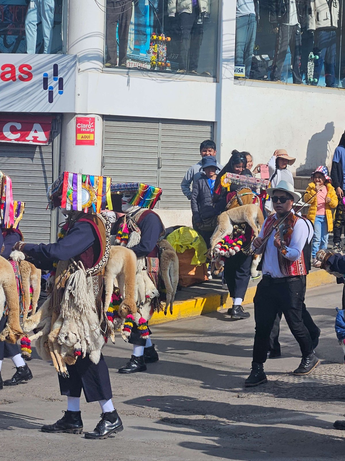 In der Stadt Cuzco lassen wir uns einfach treiben und landen direkt in einem Umzug. Irgend eine heilige Maria wird wieder gefeiert. Wir sind fast die einzigen Touristen die das sehen. Da alle kostümiert sind und ein Plüsch Vicuña dabei haben, erinnert es uns etwas an unsere Alpabzüge ;-).