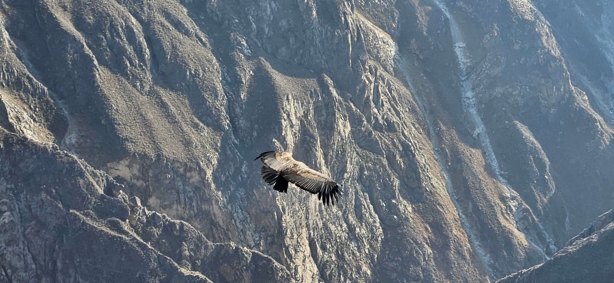Am frühen Morgen kreisen vier Kondore über unseren Köpfen. Wie sie die Thermik nutzen, sieht bei ihrer Spannweite von drei Metern dann doch sehr majestätisch aus.