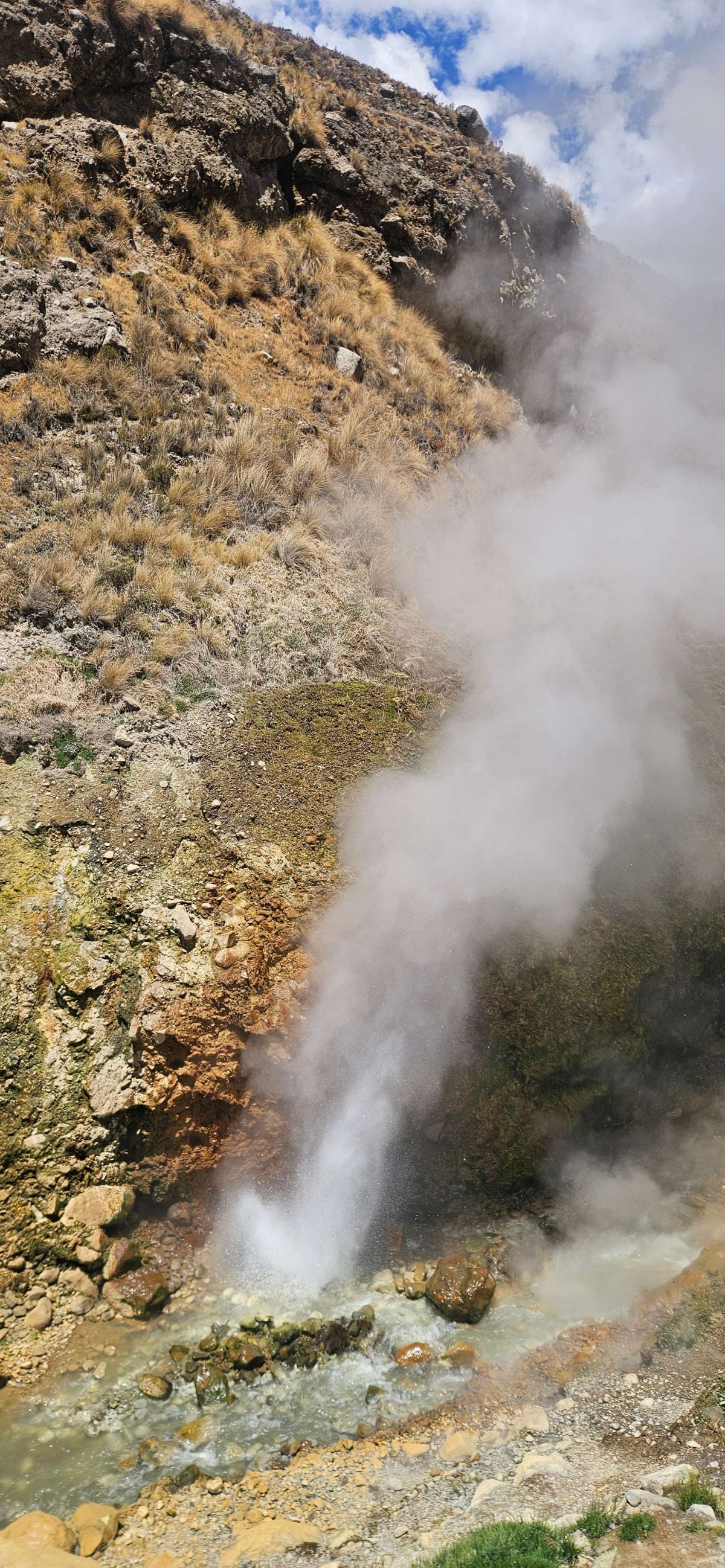 In der Nähe gibt es einen Geysir der den ganzen Tag kochendes Wasser spuckt.