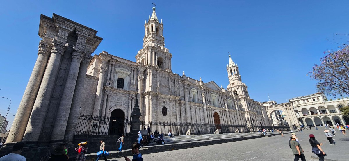 Arequipa ist wahrscheinlich eine der schönsten Städte Perus die die Spanier gebaut haben. Die Innenstadt ist ganz weiss. Da die meisten Gebäude in Peru gar nicht gestrichen sind, heben sich diese Gebäude schon sehr ab. Auf eine Free Walking Tour verzichten wir dieses Mal und lassen uns schlendern gemütlich alleine durch die Stadt. Wie auch in Cusco ist die Versuchung noch mehr Alpaca Ware zu shoppen gross.