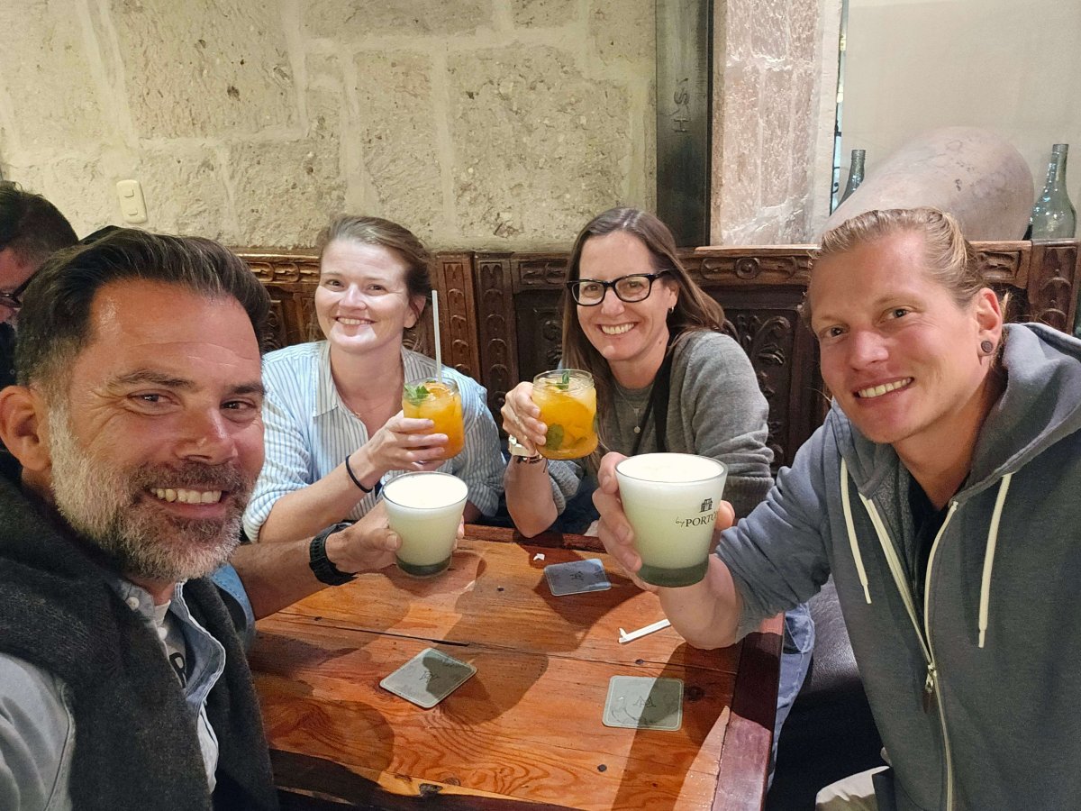 Am Abend essen wir zusammen mit den Wallisern Josi & Selina in einem Restaurant Fondue Chinoise. Da wir nicht gerade einen Platz kriegen, spendiert uns das Restaurant einen Pisco sour. Offensichtlich haben wir uns mit dem Restaurant etwas missverstanden. Wir sind davon ausgegangen, dass wir ein Fondue für vier Personen als Hauptspeise bestellt haben. Es stellt sich aber heraus, dass das Fondue als Vorspeise für zwei Personen gedacht war. Für uns nicht ganz logisch, aber was solls. Es war trotzdem gut 😊
