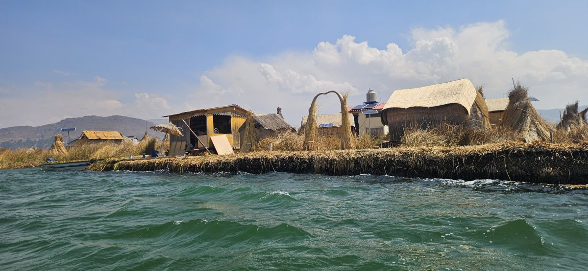Wir werden noch von den Deutschen und einem Texanischen Motorradfahrer begleitet. Wir sind uns nicht sicher ob die Indigenen wirklich auf den schwimmenden Inseln leben oder ob es heutzutage alles Show für die Touristen ist. Selbstverständlich gibt es bei der Tour die obligate Verkaufsshow. Da Ramón keinen Platz für sperrige Souvenirs bietet, unterstützen wir die Gemeinschaft indem wir bei Ihnen im Restaurant essen. Jetzt ist die Welt wieder in Ordnung.