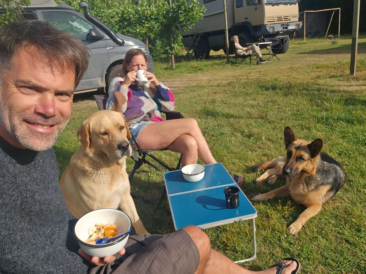In der Stadt kann man nicht gut übernachten. Etwas ausserhalb der Stadt finden wir zwar einen teuren, dafür umso gemütlicheren Campingplatz. Irgendwie ziehen wir immer alle Hunde an. Keine Ahnung weshalb.