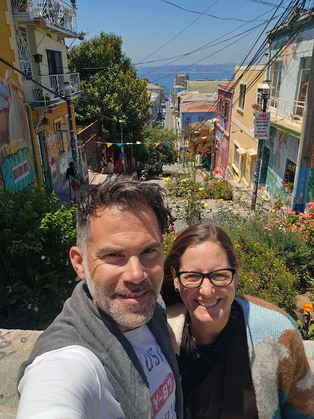 Am Wochenende treffen wir uns mit Cony, einer Freundin von Joanna die sie in Texas während dem Austauschjahr kennengelernt hat. In Santiago wollen wir aber nicht bleiben. Städte sind zwar toll, aber auch immer etwas anstrengend und teuer. Deshalb fahren wir nochmals zurück an den Strand nach Valparaiso. Diese etwas kleinere Stadt war früher der wichtigste Handelshafen von Chile. Unterdessen wurde er aber von San Antonio abgelöst. Valparaiso ist sehr farbig und sieht irgendwie wie ein riesiges Kunstwerk aus. Eigentlich die perfekte Mischung aus shabby chic.