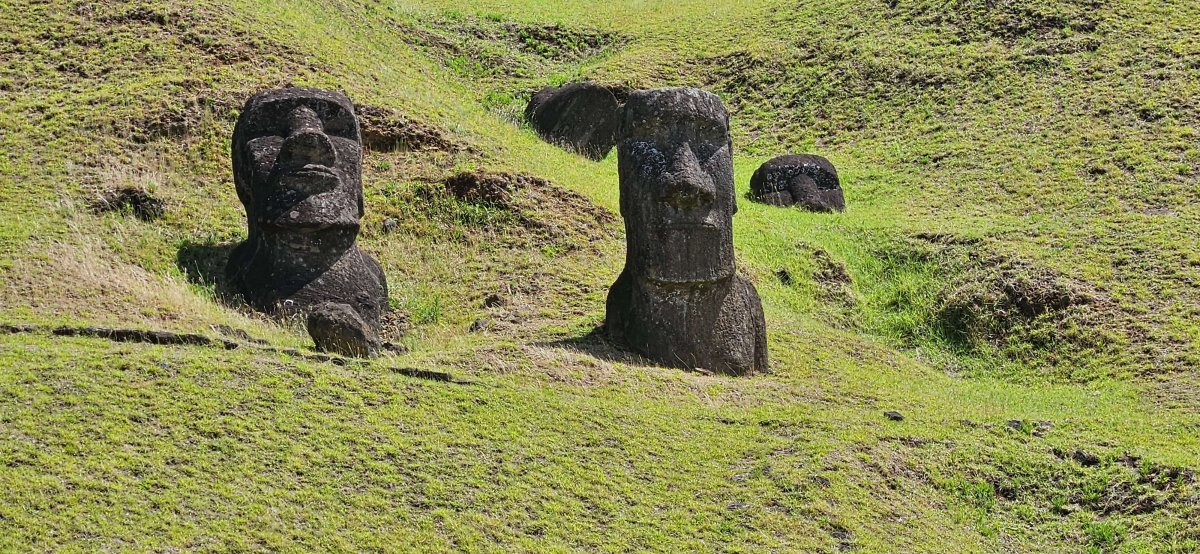 Wie so in vielen anderen Kulturen wurden die Könige grössenwahnsinnig und die Grabsteine immer grösser. Je grösser die Figur, desto jünger die Figur. Auf der Insel hat es einen Steinbruch wo die Figuren quasi in Massenproduktion angefertigt wurden. Das Problem und der Untergang der Insel war dann auch, dass es einfach zu viele Könige und zu viele Untertanen auf der Insel gab. Die blaublütigen nannte man auf Rapa Nui übrigens Langohren und die Untertanen Kurzohren. Die Langohren besassen Ohrschmuck und die Kurzohren nicht. Wenn nur alles so einfach wäre. Während der Hochkonjunktur lebten über 20'000 Personen auf der Insel die alle ernährt werden mussten. Die Arbeit im Steinbruch wurde den Untertanen irgendwann zu viel und sie begannen ihre Könige zu stürzen. Bei dieser Revolution gewannen dann auch die Kurzohren. Alle Steinfiguren wurden dabei umgestürzt. Wir sind immer davon ausgegangen, dass Tsunami diese umgestürzt hat, aber nein, auch hier war der Mensch am Werk.