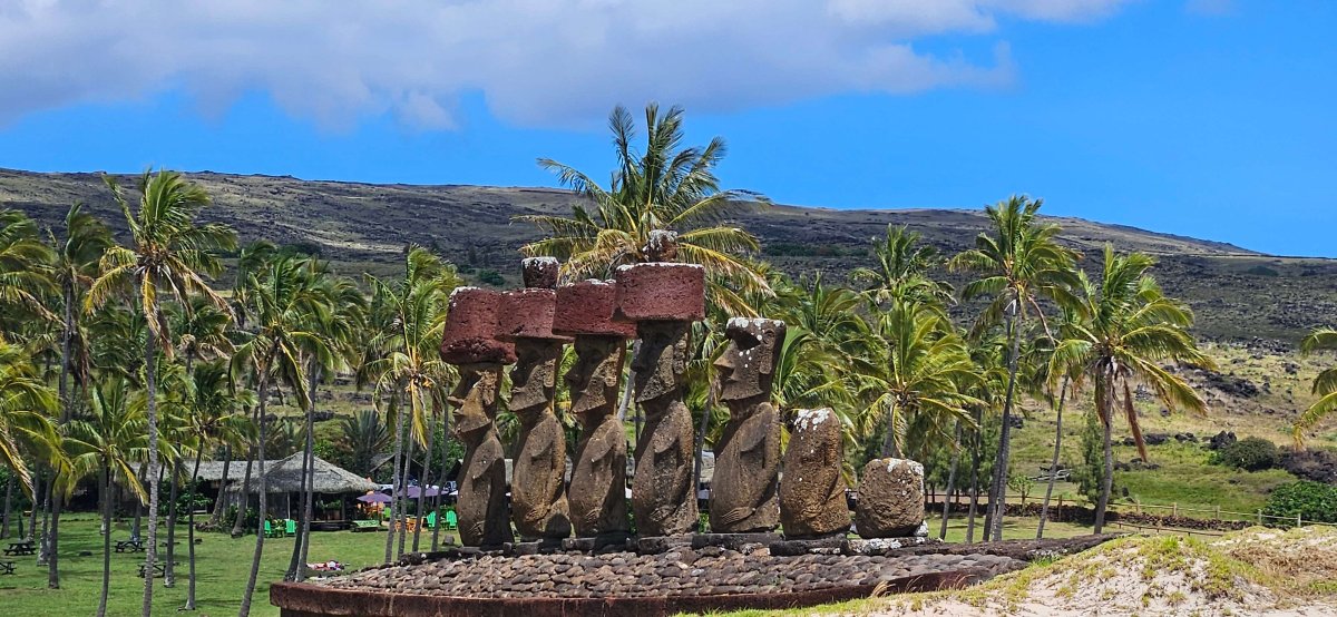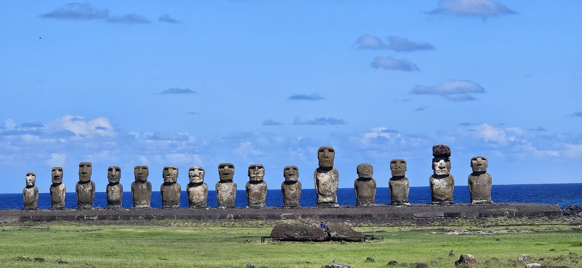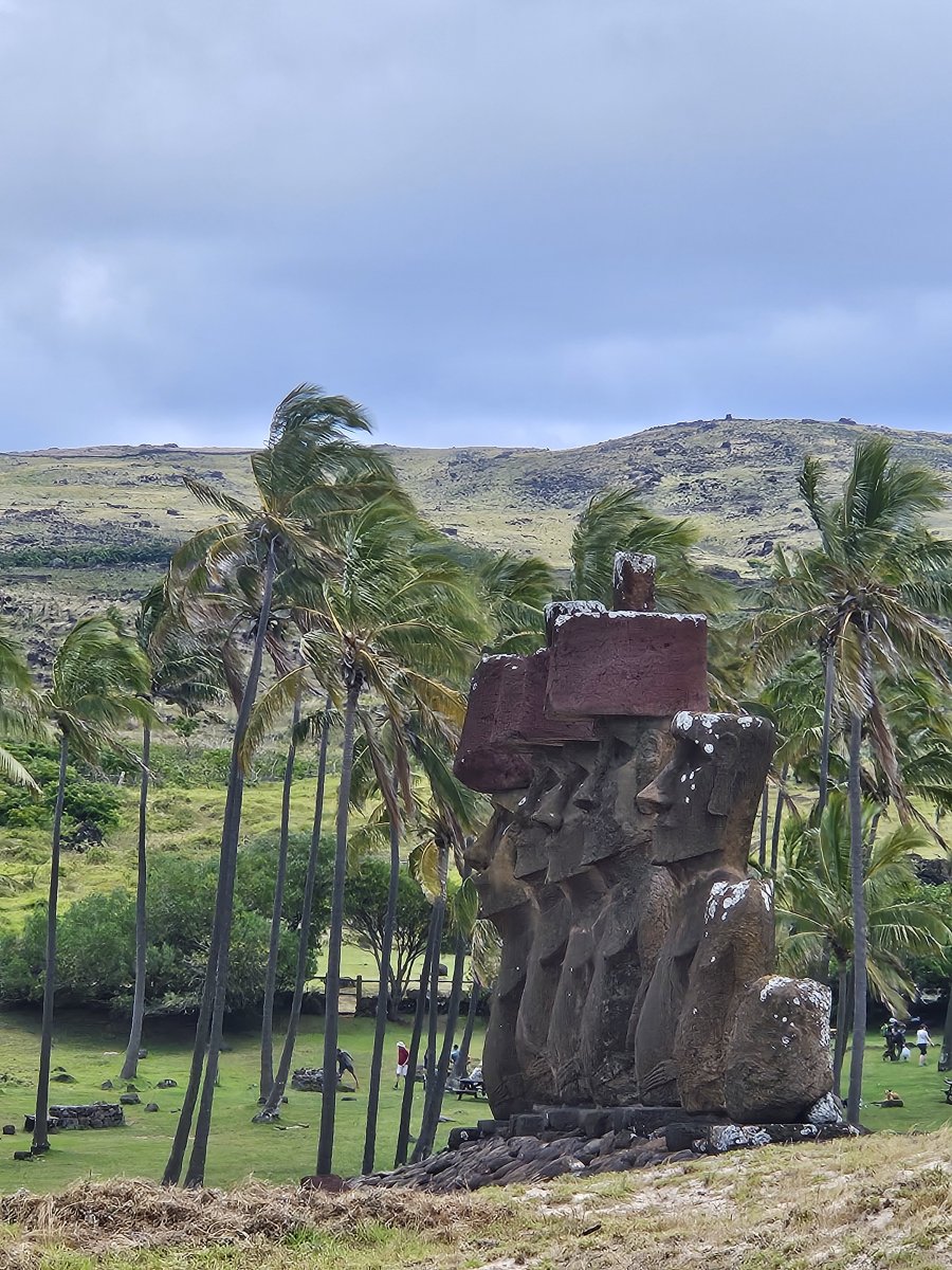 Die Insel ist berühmten Steinfiguren sind eigentlich die Grabsteine der gestorbenen Könige. Die Leichname der Könige wurden erst im Krematorium verbrannt und dann im Podest unter den Steinfiguren vergraben. Die Seele sollte dann in den Kopf der Steinfiguren wandern und von da aus die Bewohner beschützen. Deshalb schauen die Figuren auch immer Richtung Insel und nicht Richtung Meer.