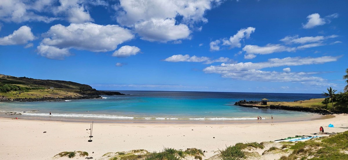 Zwei kleine schöne Sandstrände hat es auch auf Rapa Nui. Zum Baden ist es uns dann aber doch ein bisschen zu kalt.