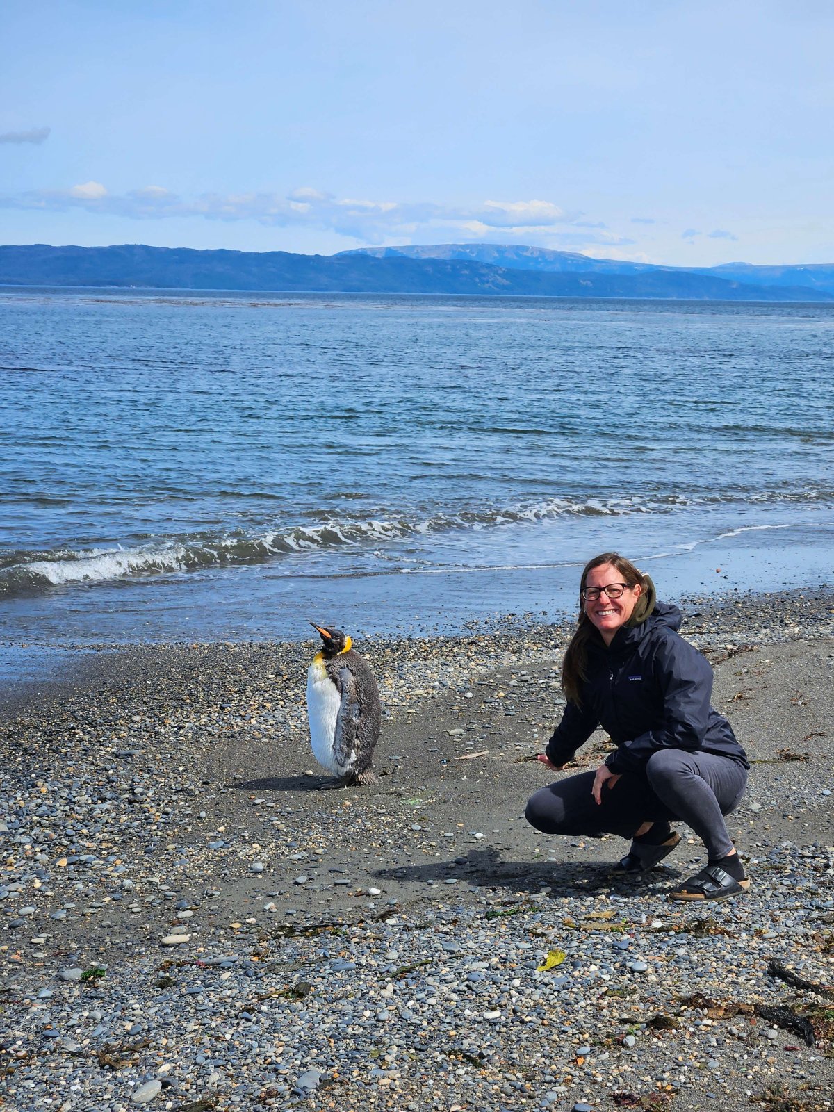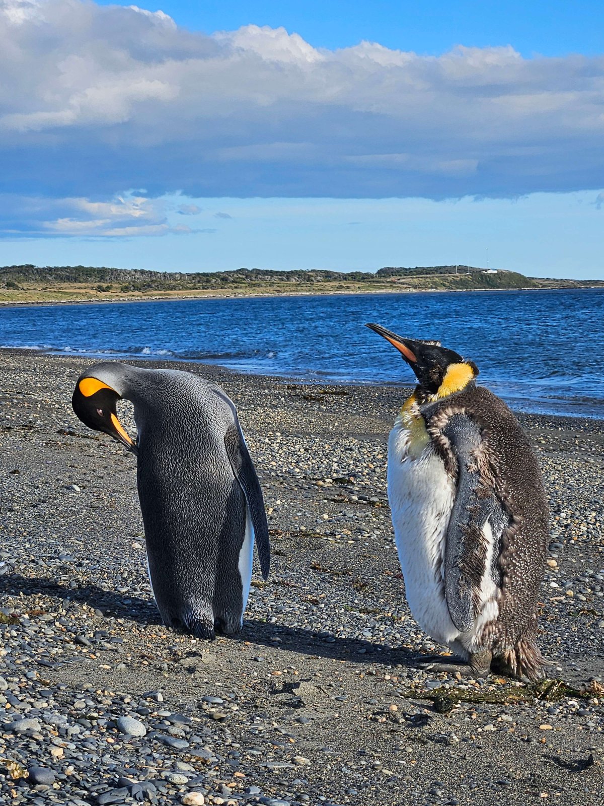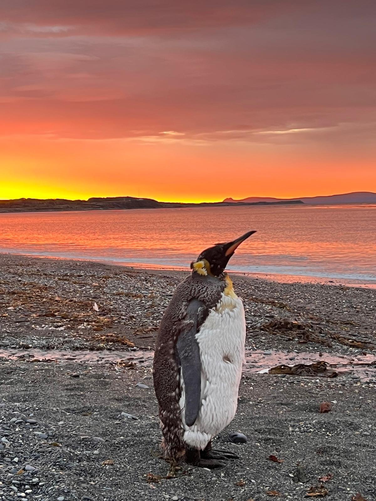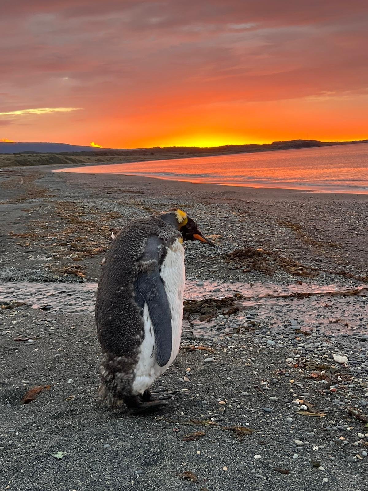 Dürfen wir vorstellen, das ist lonely Bob. Ein Königspinguinbaby das sich gerade mausert. Solange er die Flaumfedern noch hat kann er noch nicht ins Wasser. Glück für uns, denn ausser während der Brut- und Mauserphase sind die Pinguine nie an Land.