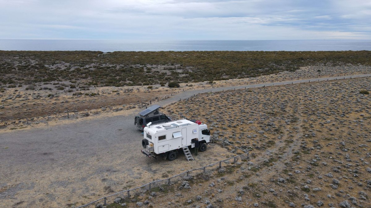 Leider sind wir dem Wind noch nicht entkommen. Aber ohne Wind ist es irgendwie auch nicht ertragbar. Den ersten Tag in Caleta Olivia verbringen wir schwitzend bei 37°C am Schatten. Da das Meerwasser eiskalt ist will man sich darin auch nicht abkühlen. Aber immerhin können wir uns so powerbräunen. Es könnte schlimmer sein. Wir sehen es jetzt als unsere Strandferien an. Immerhin windet es nicht und wir können wie gewohnt oben schlafen…..haben wir uns zumindest so gedacht. Aber ja, falsch gedacht. Selbstverständlich fängt es am Abend an zu winden. Und der Wind ist richtig kalt.