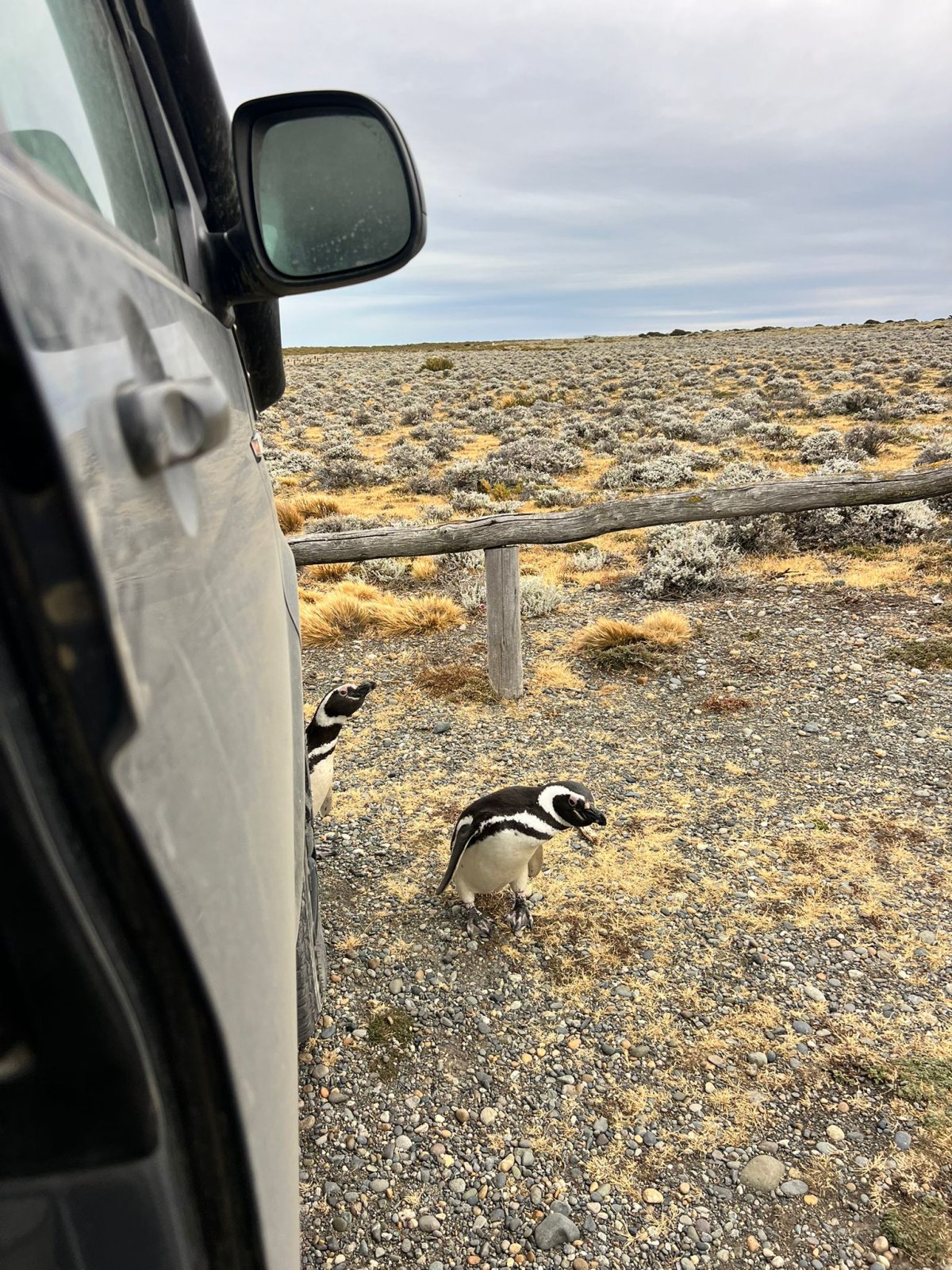 Mit der Fähre fahren wir wieder über den Magellankanal und von da zur Argentinischen Grenze. Unser Ziel: Cabo Virgines. Hier soll die zweitgrösste Kolonie von Magellanpinuinen ihre Brutstädte haben. Den Weg dahin müssen wir uns aber wie immer erst verdienen. Über 100 Km schlimmes Ripio Waschbrettpiste. Wir sind nicht die Einzigen die Argentinier fahren diese Strecke für einen kurzen Empanada Stopp und um kurz die Pinguine zu sehen. Nach einer zirka halb Stündigen Pause fahren sie die 100 Km Ripio wieder zurück als gäbe es nichts Normaleres.