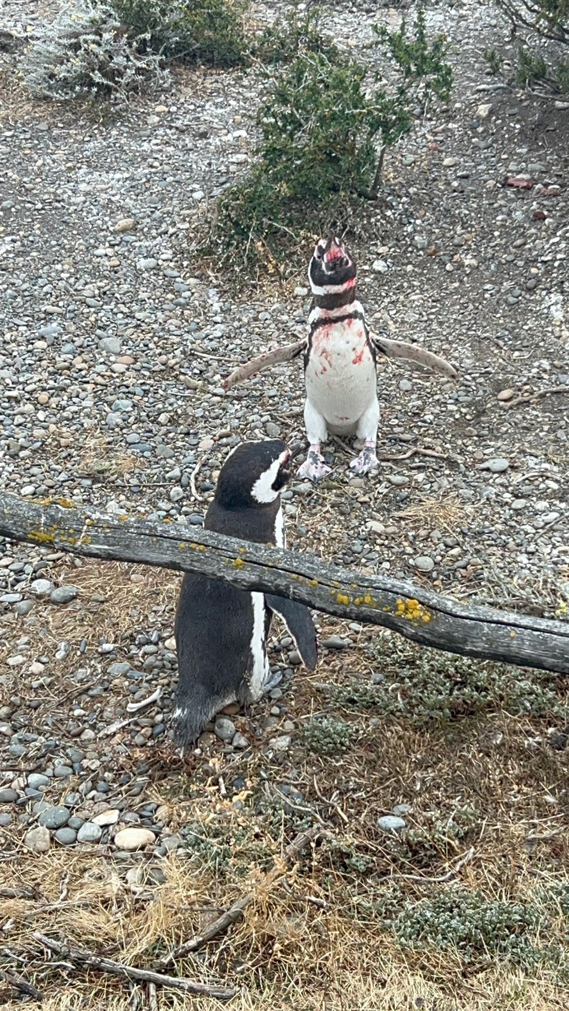 Die ersten Pinguine die wir sehen, sind ganz schön am Streiten. Wie es aussieht geht es um Leben oder Tod denn Beide sind komplett blutüberströmt. So haben wir uns die knuffligen Pinguine nicht vorgestellt. Aber eigentlich ist es ja nicht verwunderlich, dass es bei über 200'000 Pinguinen auch mal zum Streit kommt.