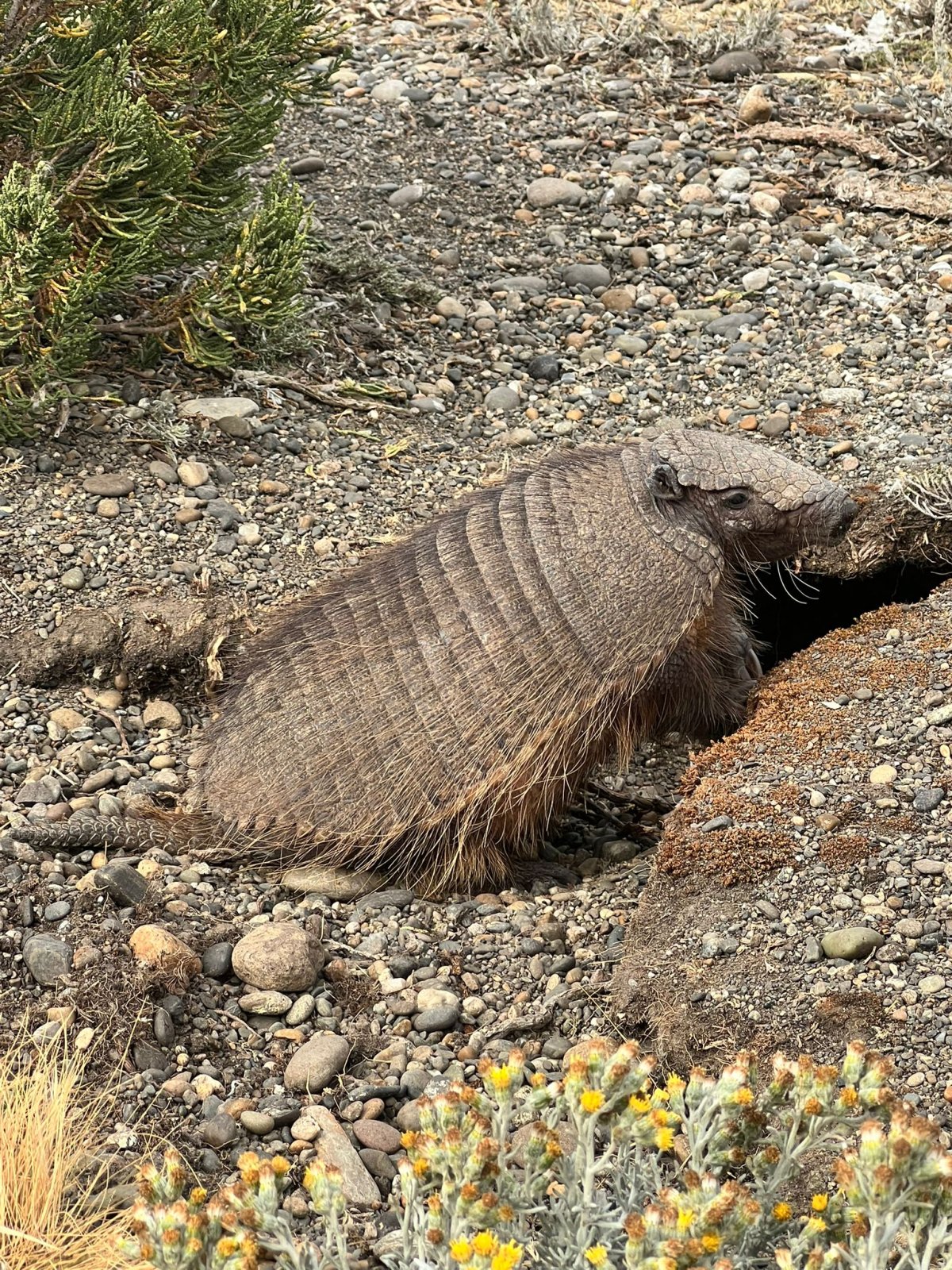 Am Cabo Virgines sehen wir auch endlich unser erstes Gürteltier. Irgendwie haben wir uns diese viel grösser und ohne diese borstigen Haare vorgestellt.