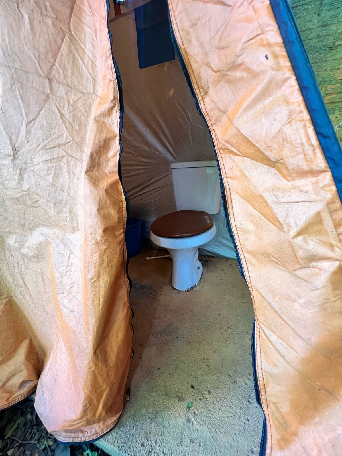 Haha diese Architektonische Glanzleistung wollen wir euch nicht vorenthalten. Das ist Bad Nummer zwei. Das andere befindet sich ganz langweilig in einem normalen Häuschen.