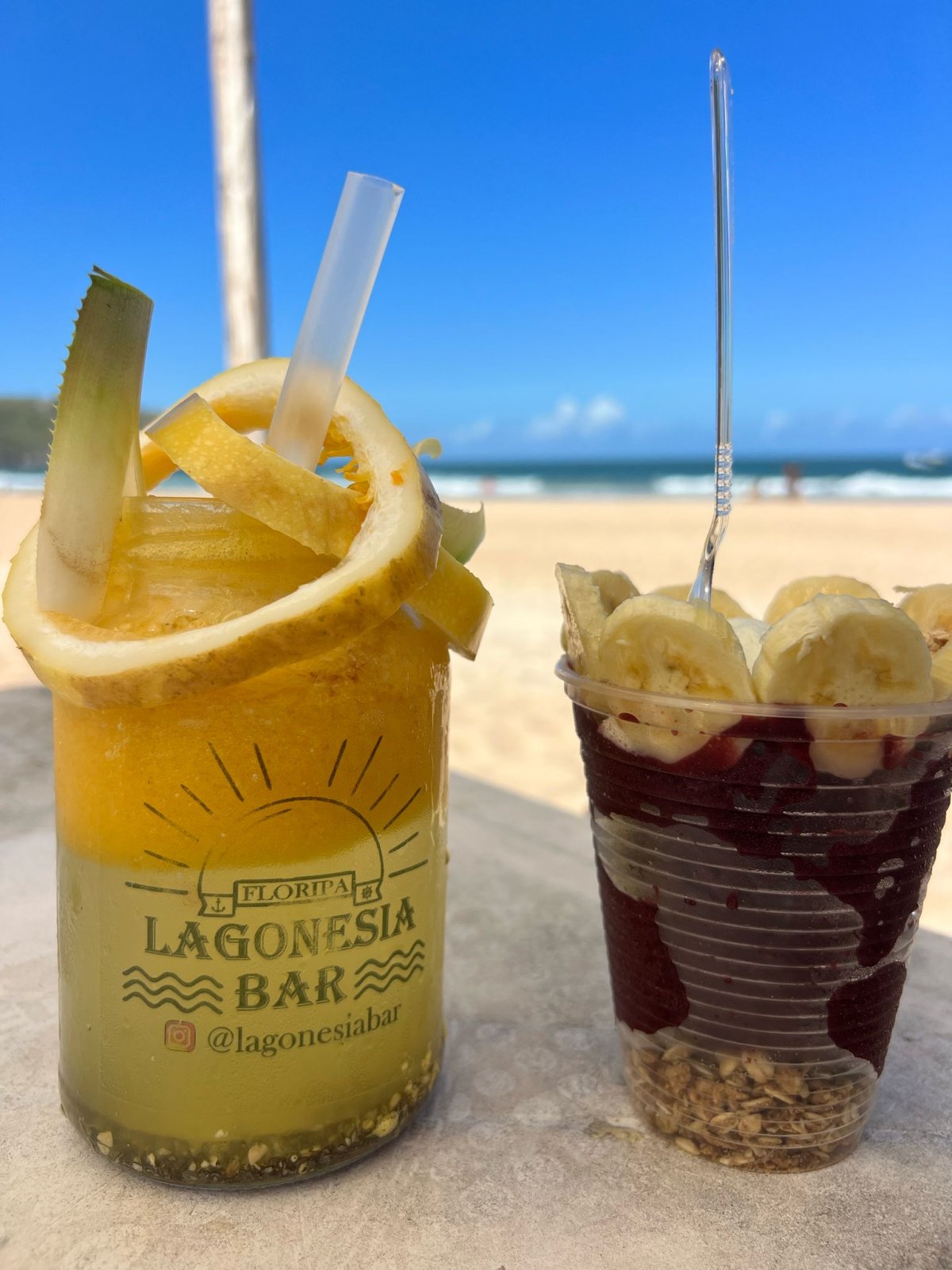 Wir probieren zum ersten Mal den gehipten Superfood die Açai Beere in Müesli Form (Açai na tigela). Und wir sind begeistert. So was könnten wir jeden Tag essen. Vor allem wenn es so heiss ist. Eigentlich ist es etwas Müesli mit gefrorenem Açai Beerensaft garniert mit Bananen. Ein gesundes Glacé zum Zmorge bei 38°C kann ja nur schmecken. Dazu noch ein Maracuya Saft und die Welt ist in Ordnung.