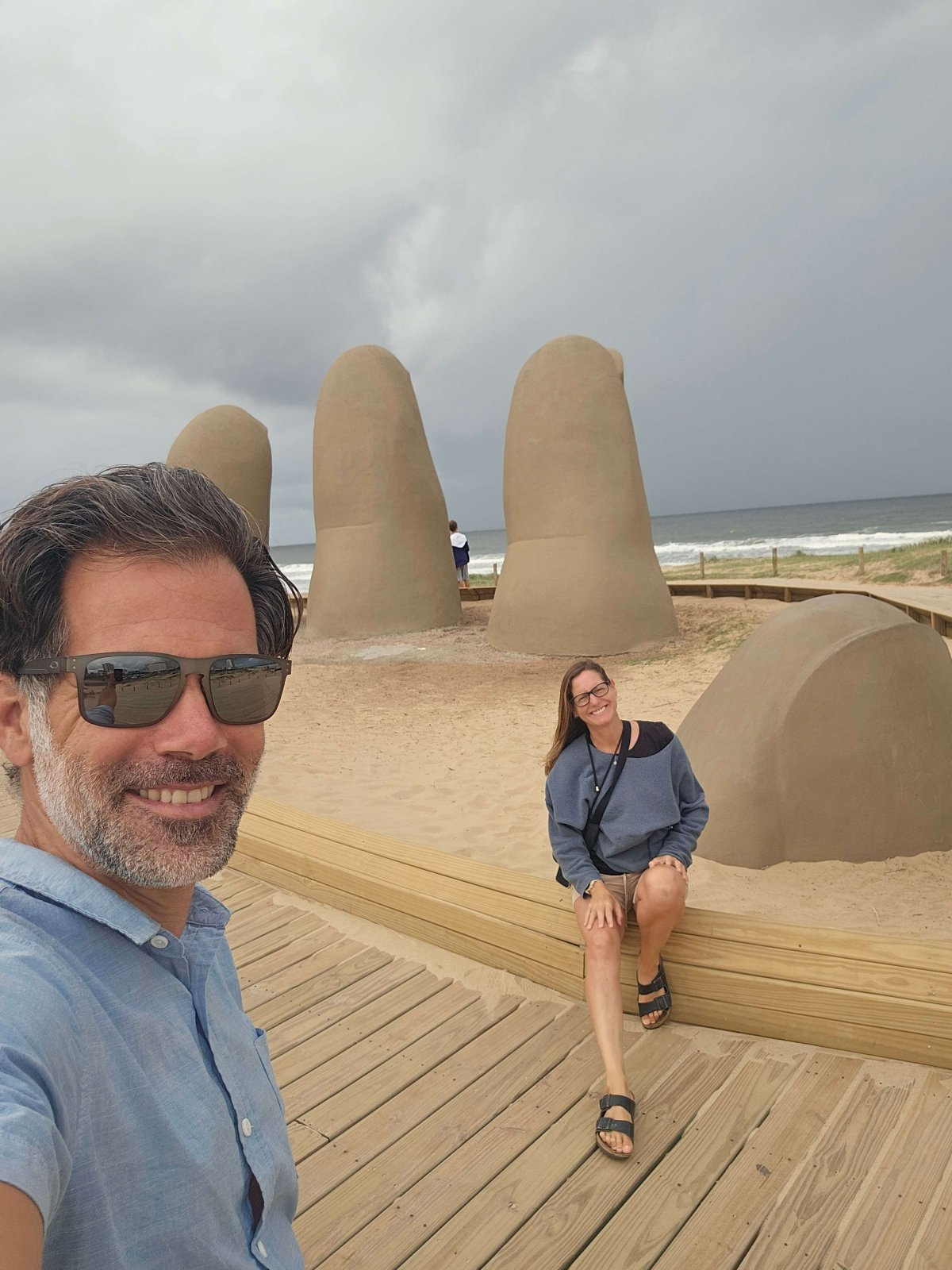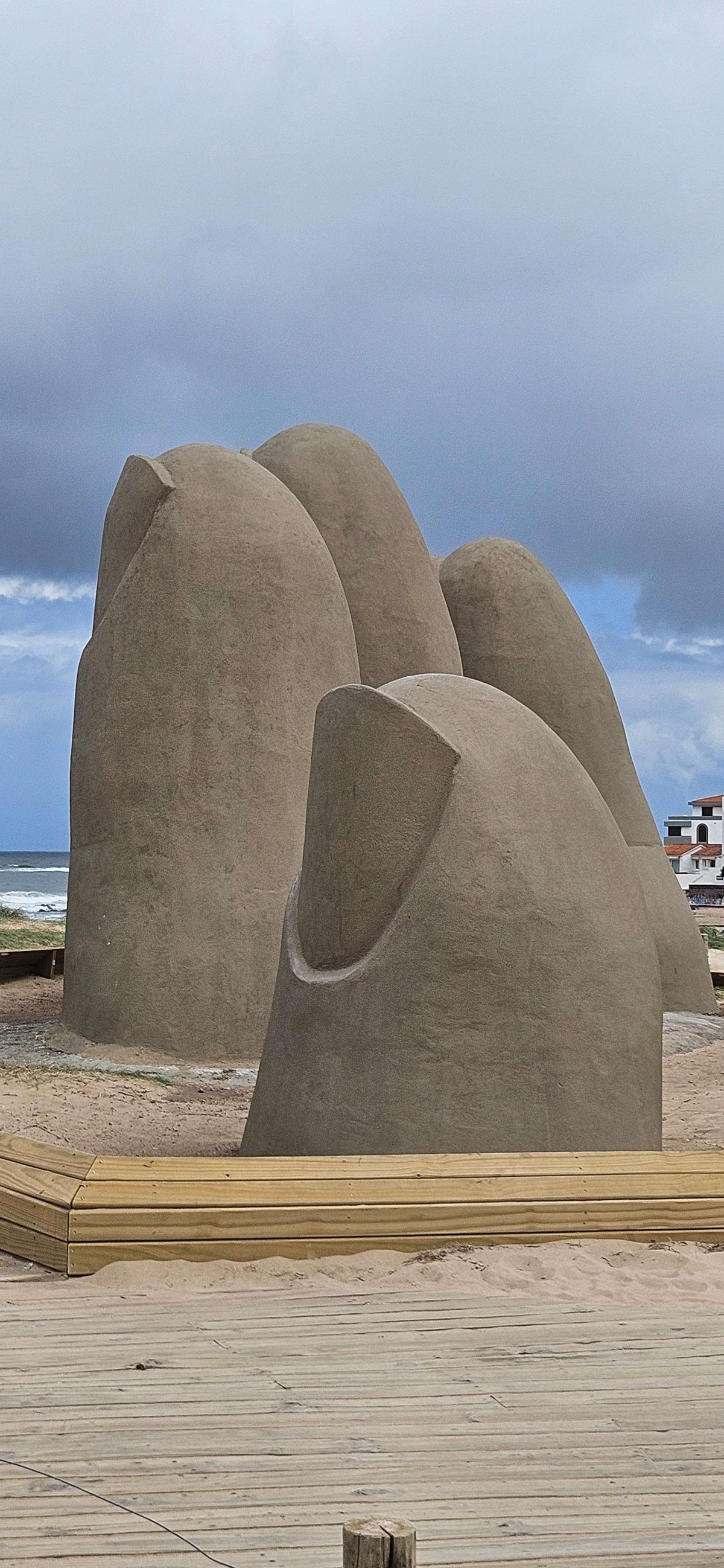 In der Atacama Wüste in Chile steht die berühmte Hand vom Künstler Mario Irrarazabal. Dass derselbe Künstler noch ein weiteres Werk in Uruguay erstellt hat wussten wir bis heute nicht. Aber umso praktischer, denn die Hand in Chile haben wir leider verpasst. Jetzt können wir fast ohne Aufwand wieder etwas von unserer Bucket List abhacken.